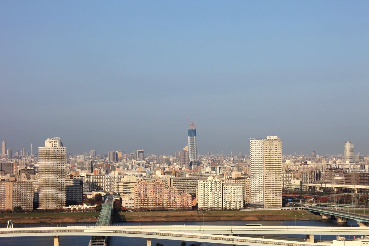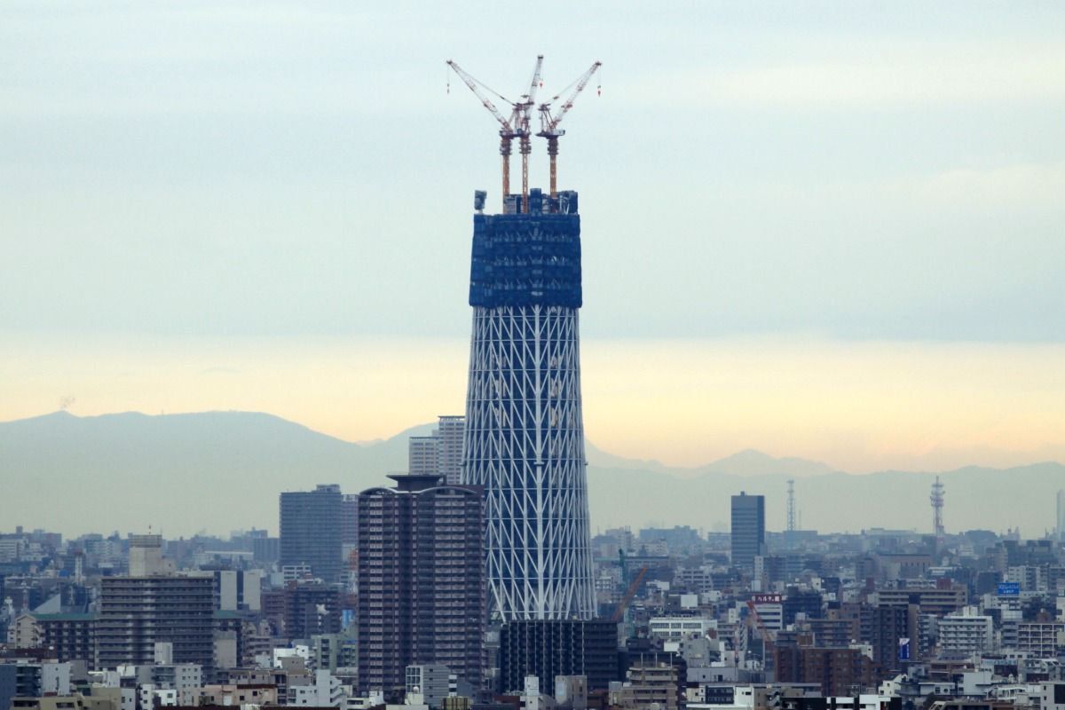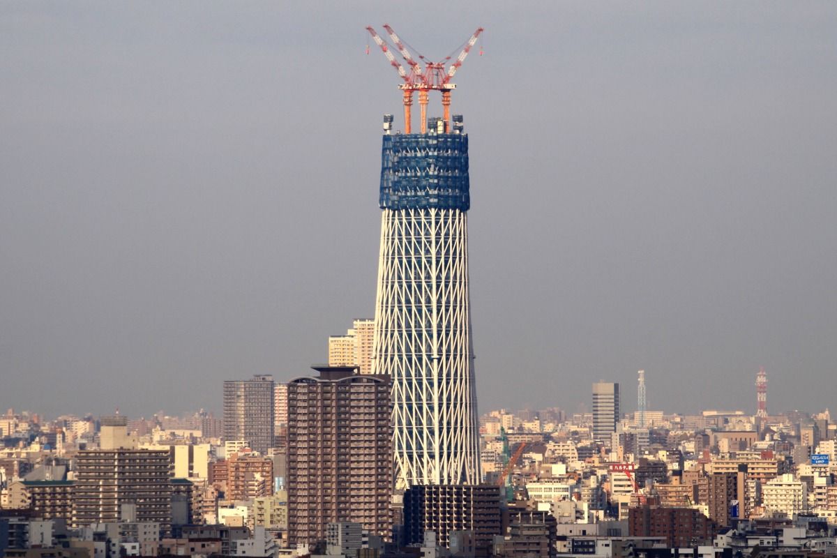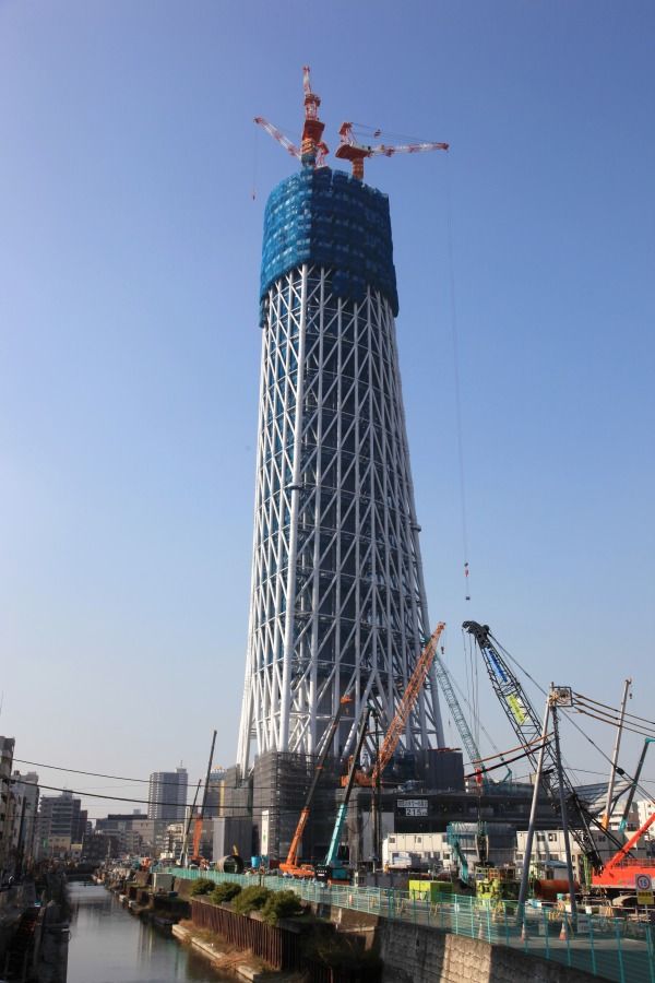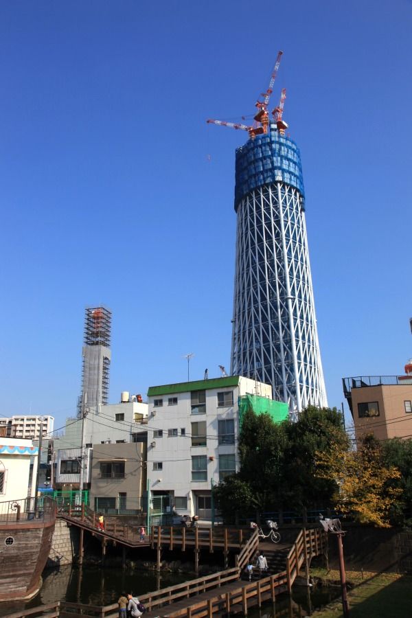 東武橋側の北十間川沿いから見たスカイツリーです。タワークレーンの位置が随分と高くなりましたね。タワークレーンが低い位置にいた頃が懐かしいです。