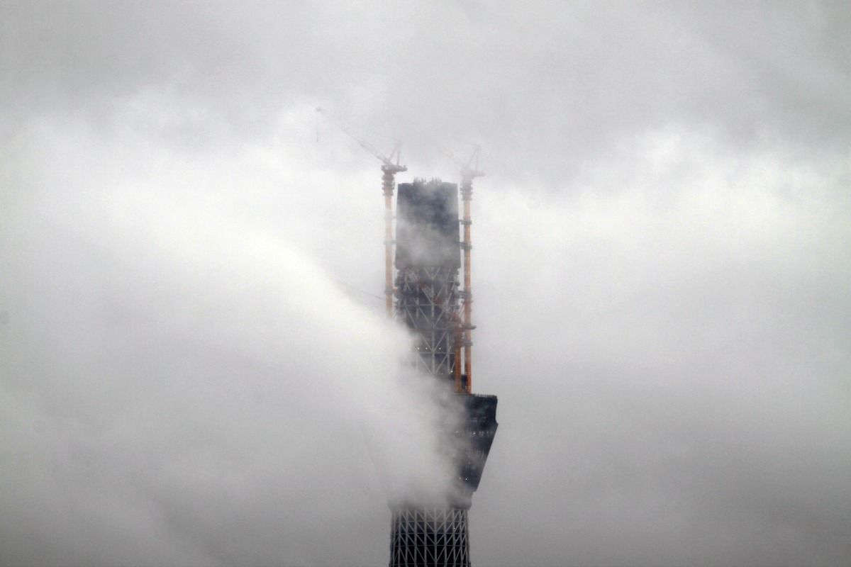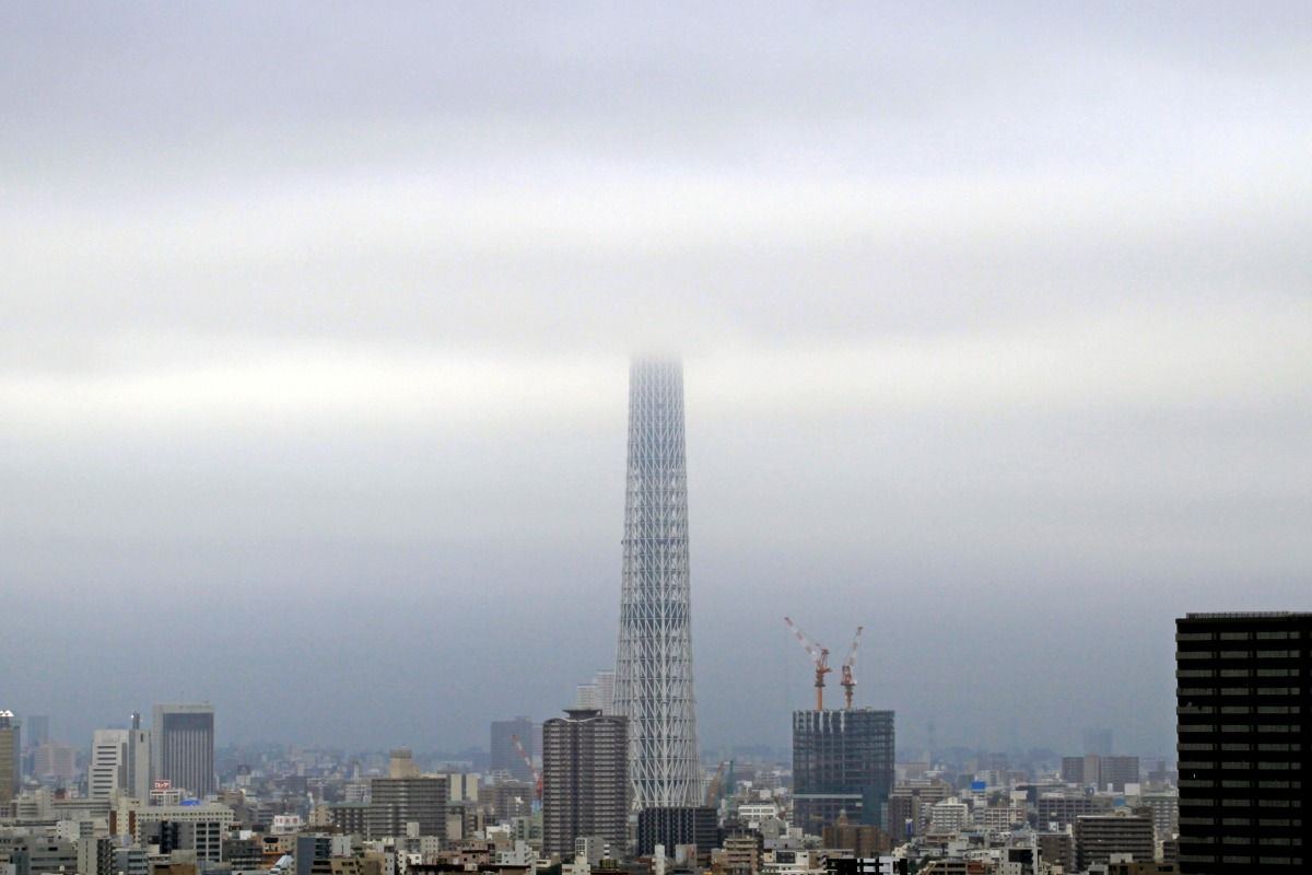 今日は雨。スカイツリーの上の方が雲の中です。またスカイツリーが伸び始めたので上が見たいのですが、第一展望台付近まで見えることはあっても、最上部が見えることはありません。。。残念(>_<)