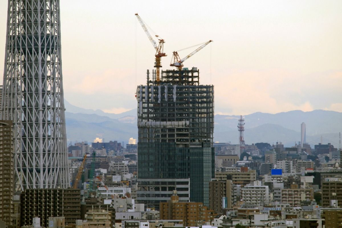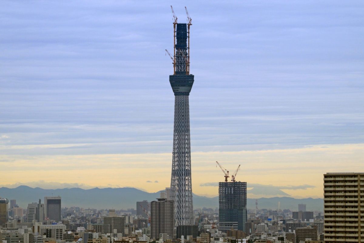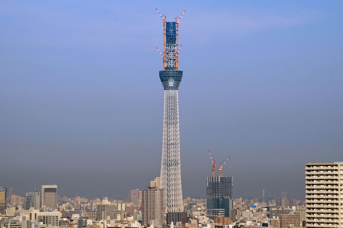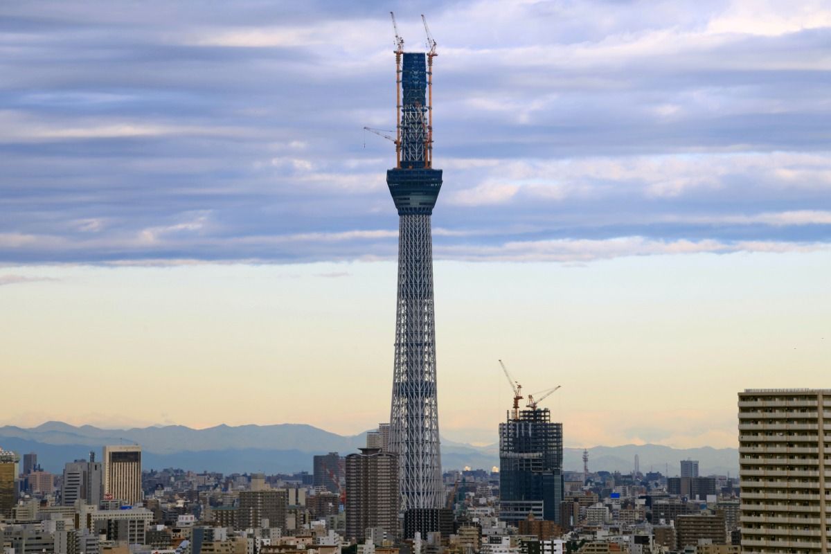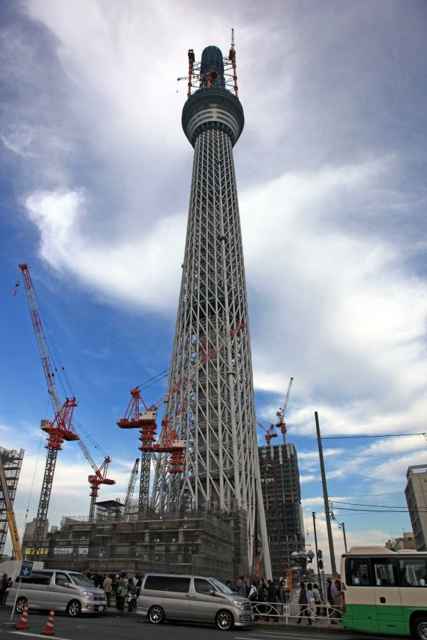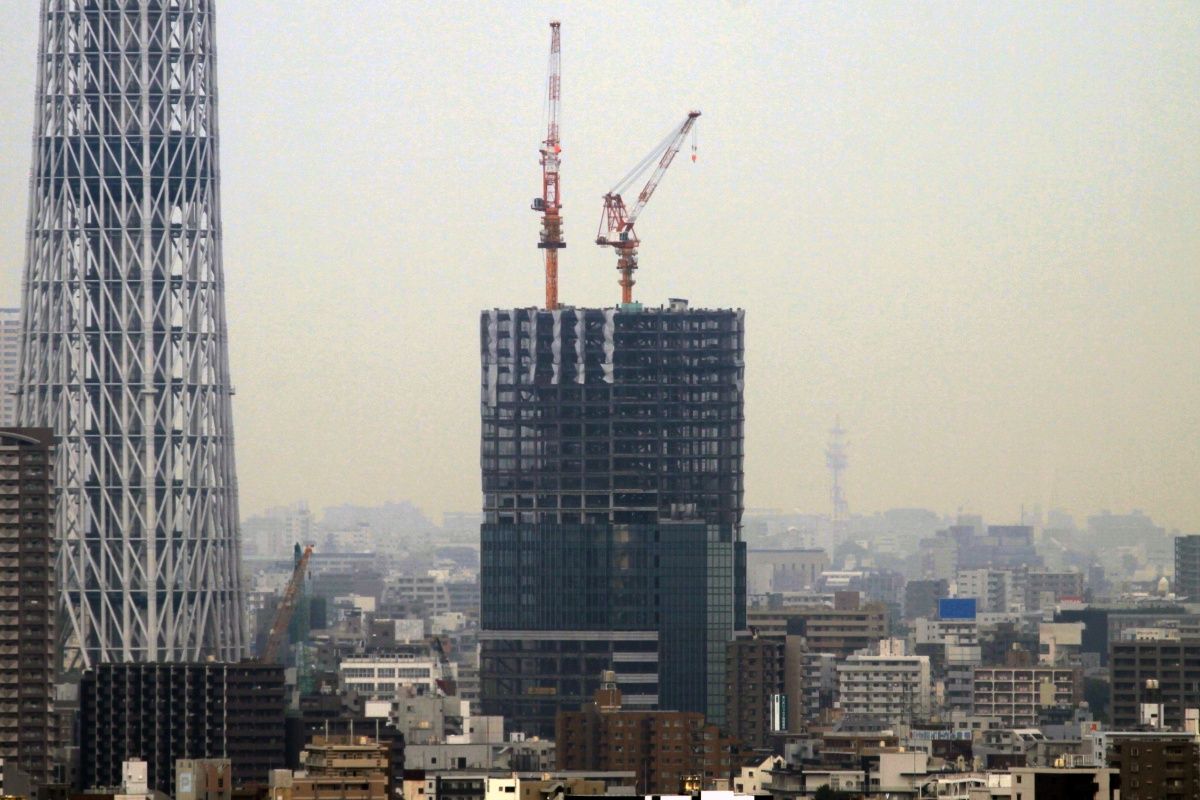スカイツリー本体側の超望遠です。第一展望台上のタワークレーンが2基とも少しだけ下がりました。29日の写真と見比べると違いがわかると思います。第二展望台の工事を邪魔しないためですかね?