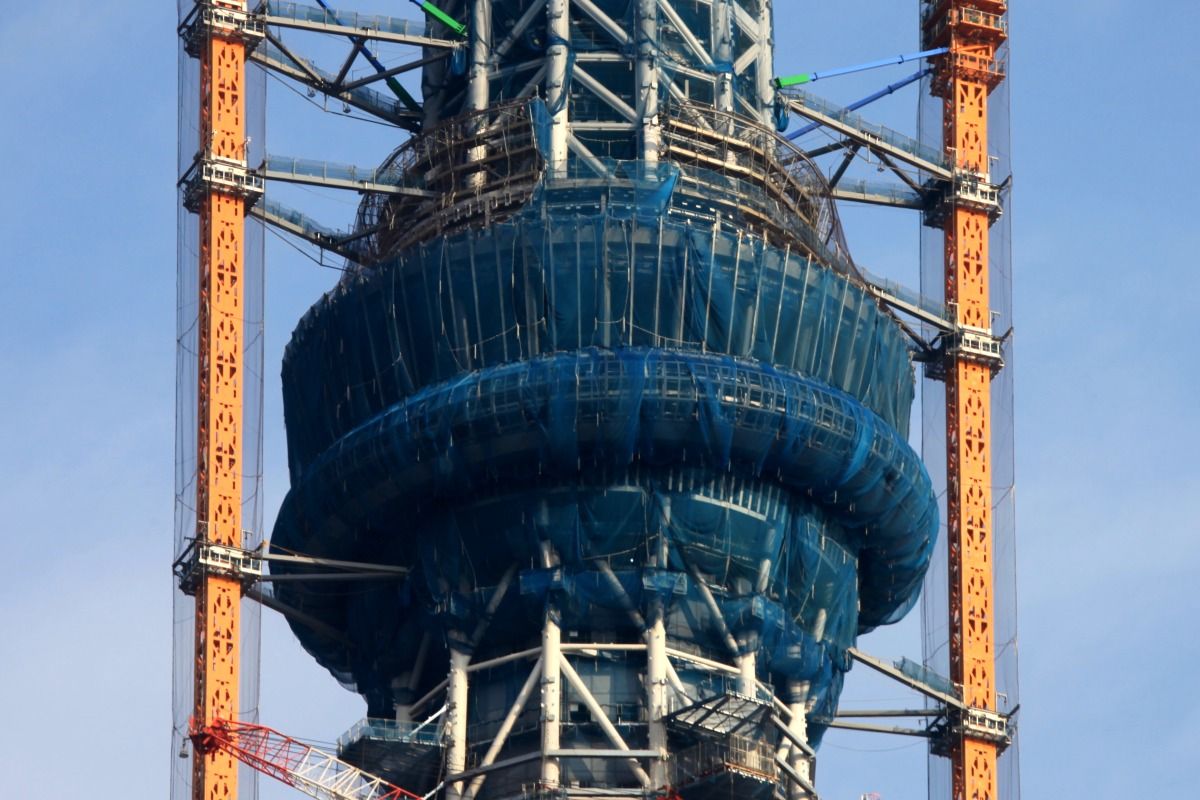 記事の写真とはスカイツリーと東京タワーが逆ですが、記事よりも密着度が高く、そして東京タワーもスカイツリーも足元から見える絶好の撮影スポットでした。