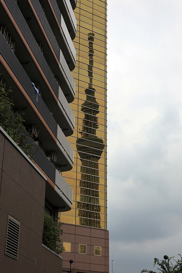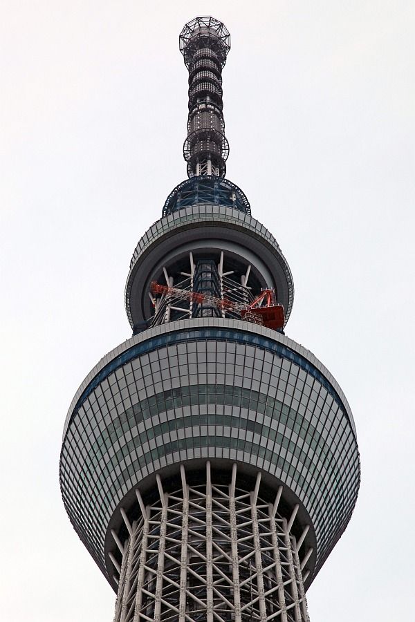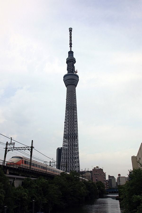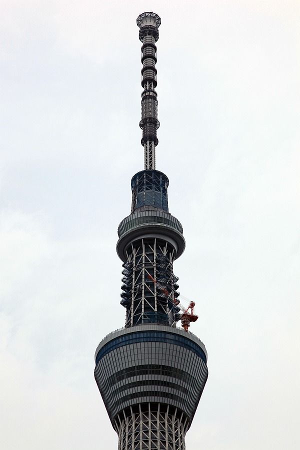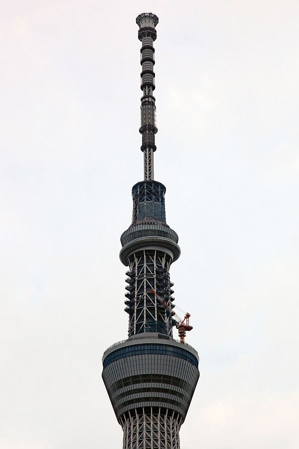 上の方にズームです。「枕橋」と比べてだいぶ見上げる感じになりますが、ここからも展望台全体がキレイに見えます。スカイツリーはこれくらいの距離から見るのが一番いいかもしれません。