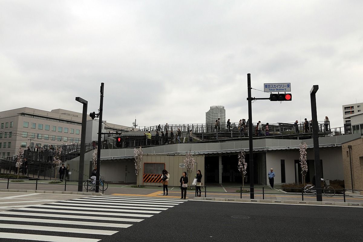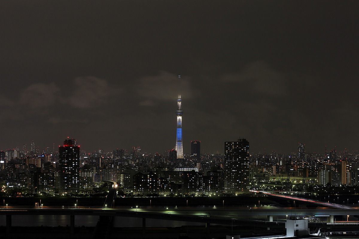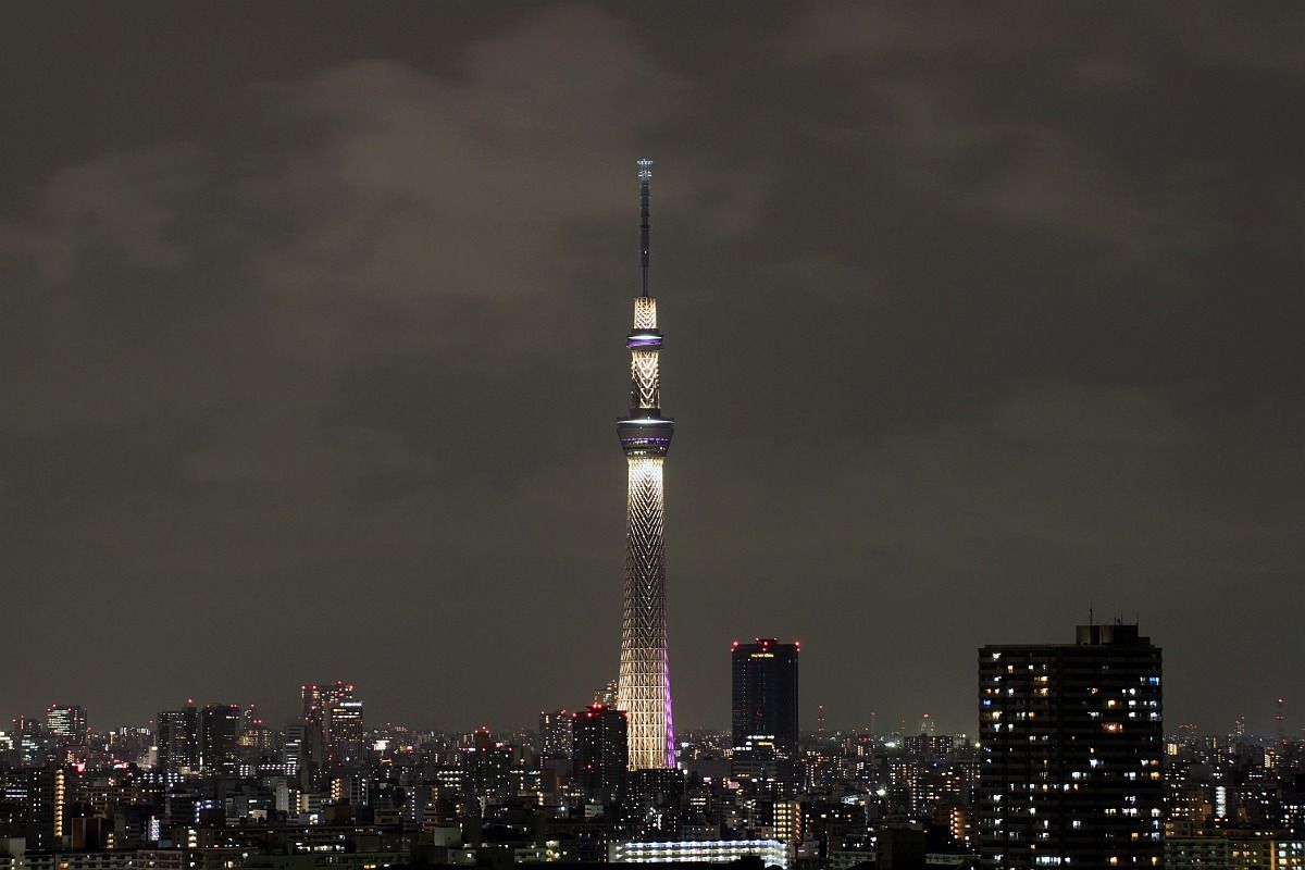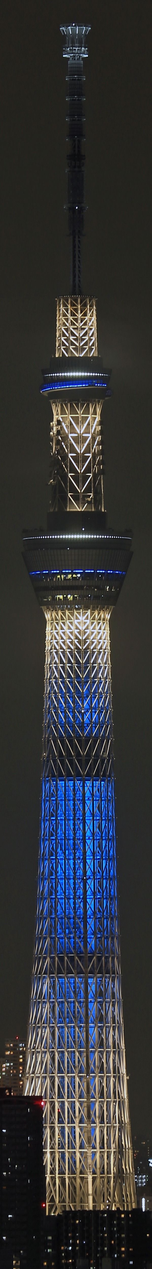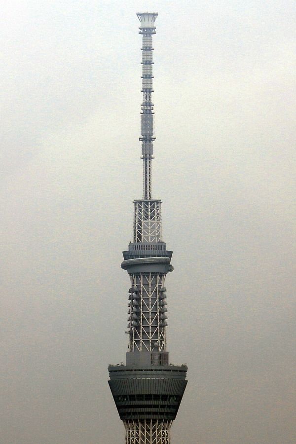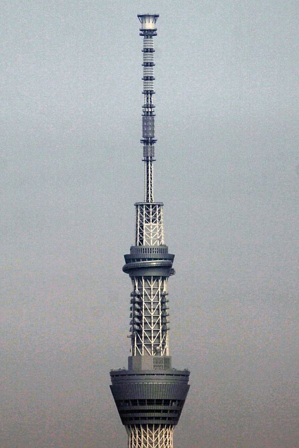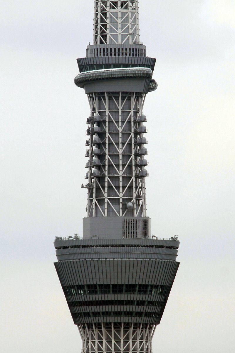 「東京スカイツリー天望デッキ」(第一展望台)、「東京スカイツリー天望回廊」(第二展望台)部分の超望遠です。