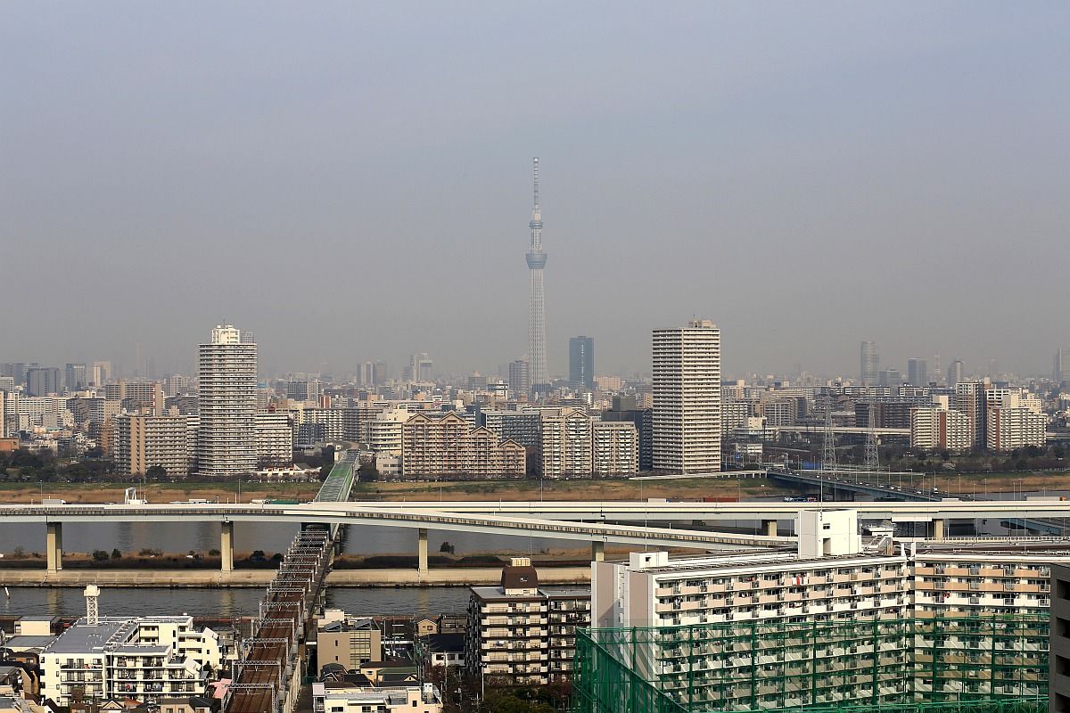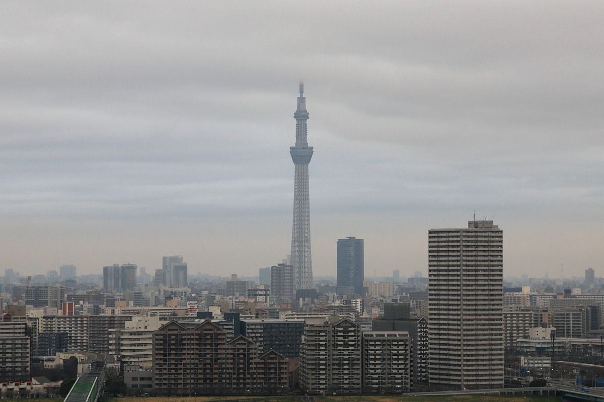 そしてこちらは滅多に使わない超広角のレンズで撮影しました。タワーホール船堀と東京スカイツリーを同時に撮影することが出来ます。昨日のスカイツリーのライティングは「舞」、タワーホール船堀はこちらの面以外はピンクにライトアップされていました。
