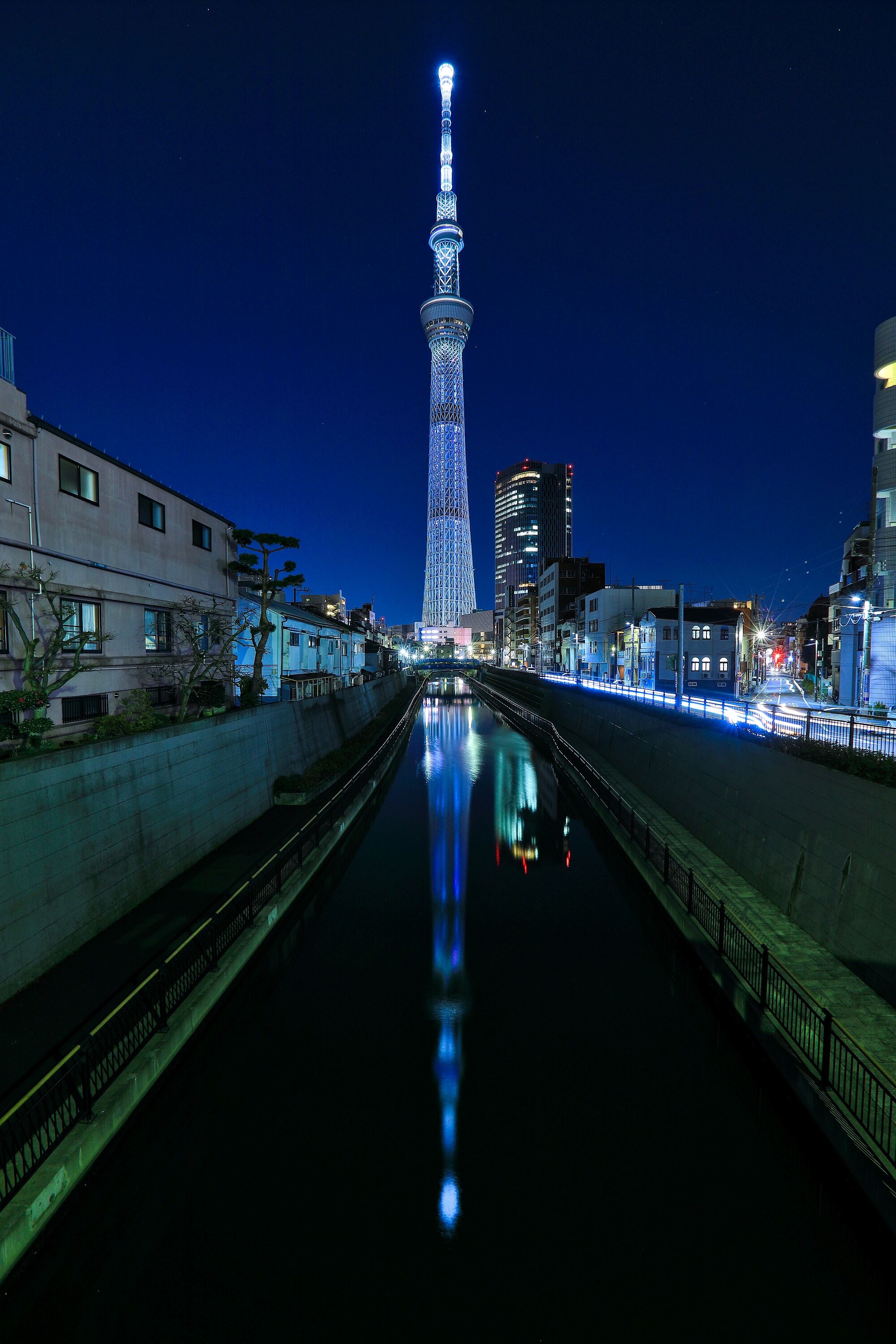 十間橋から撮影した東京スカイツリーのハロウィン限定ライティング(2025年10月29日)