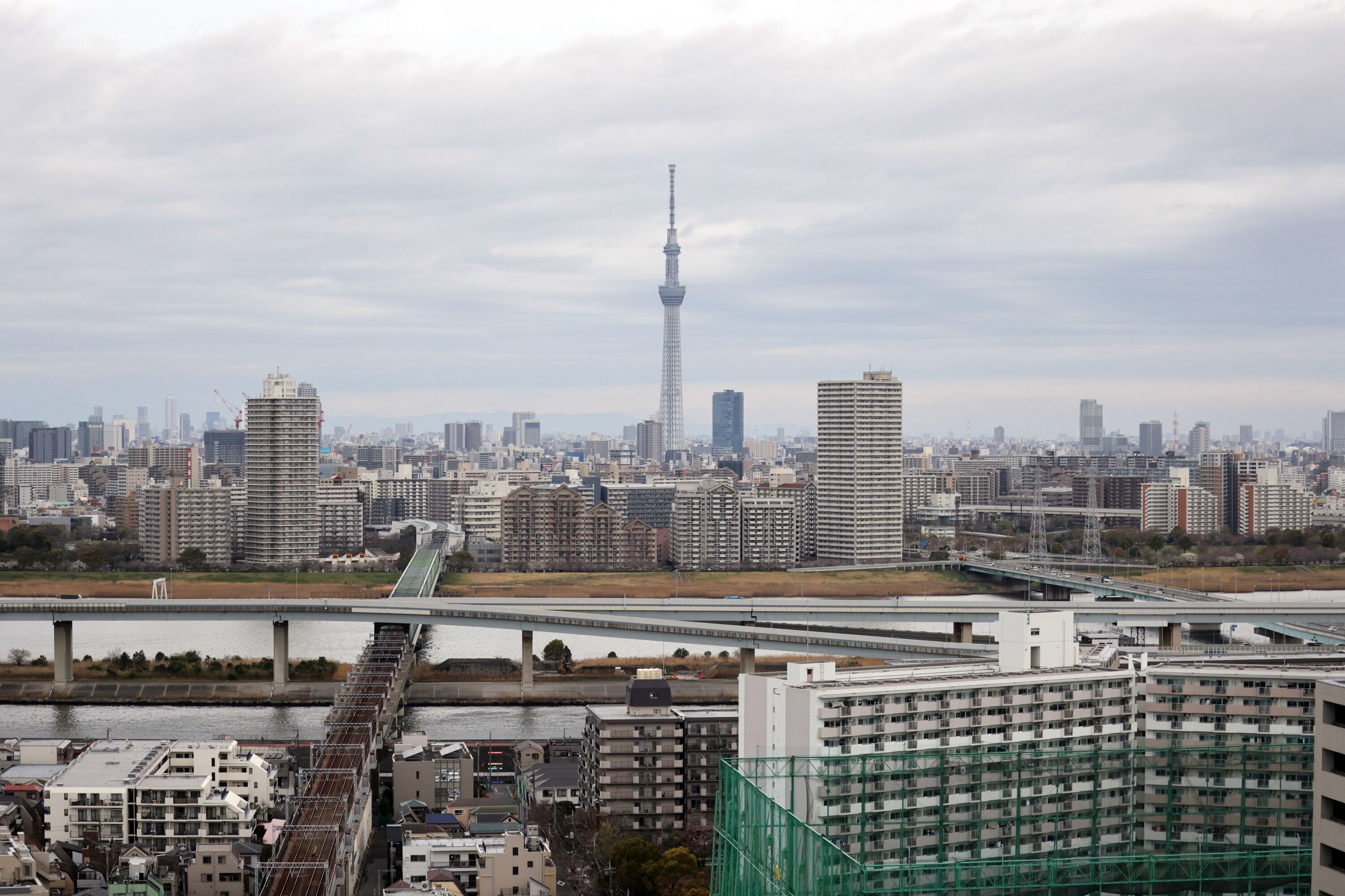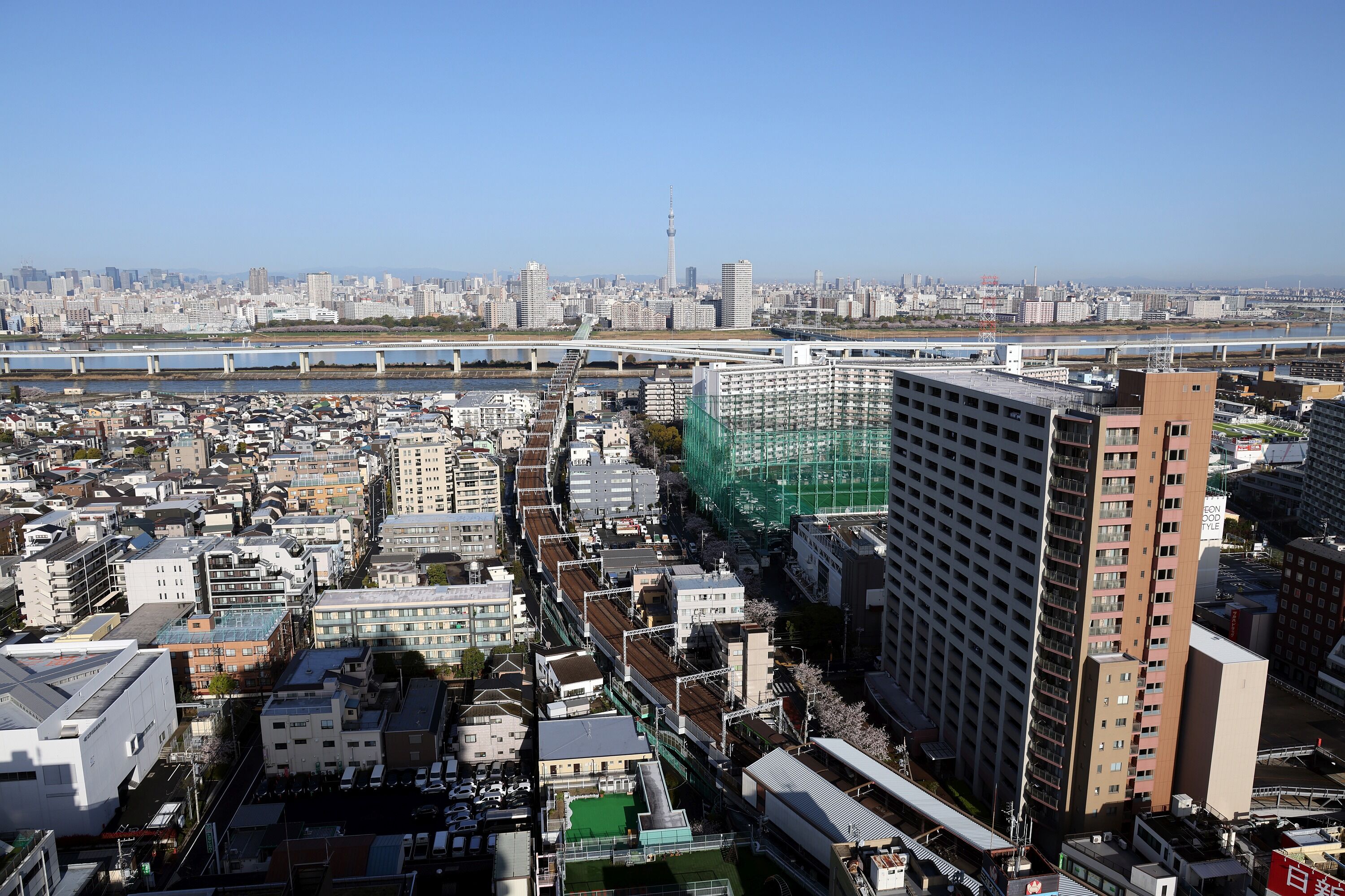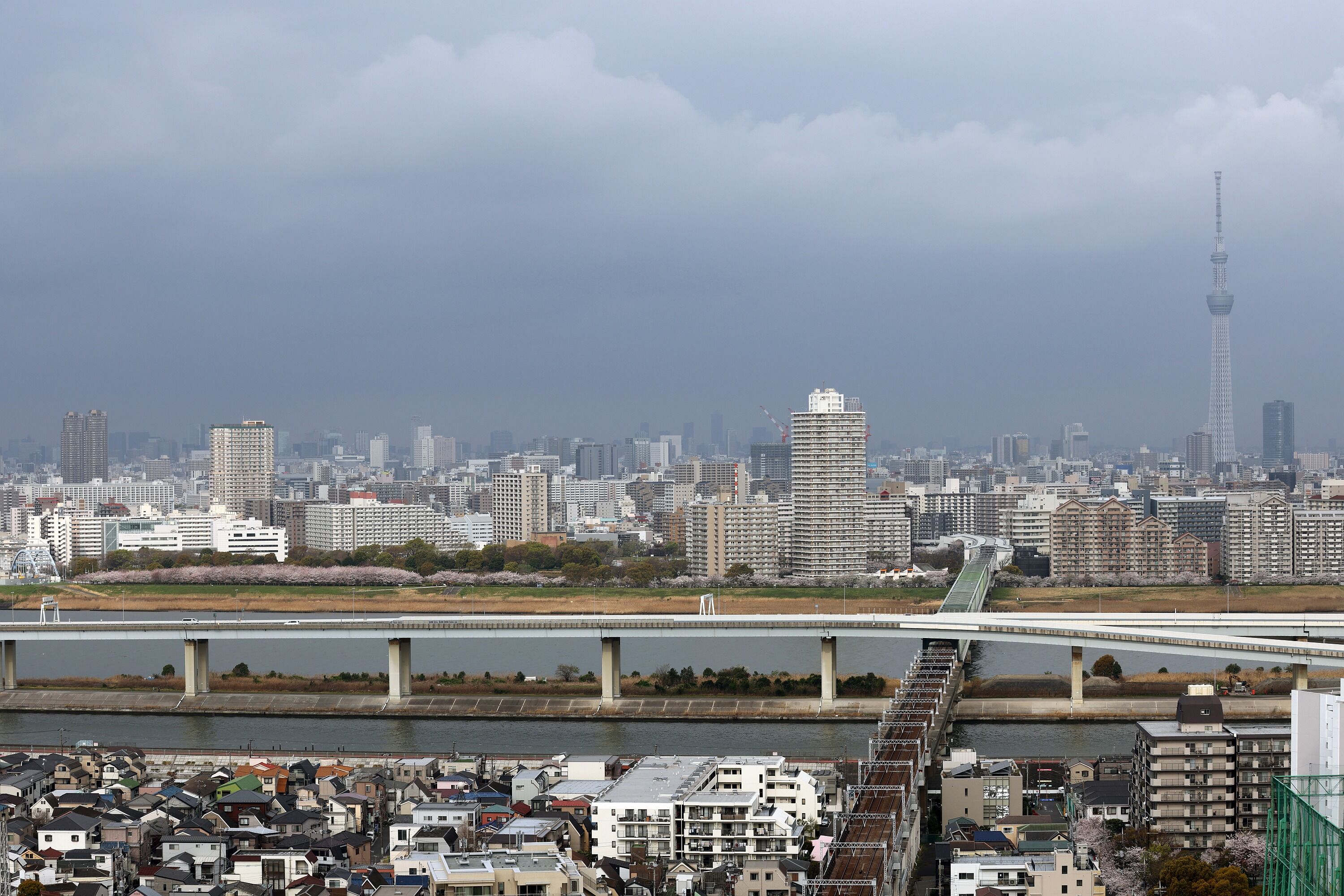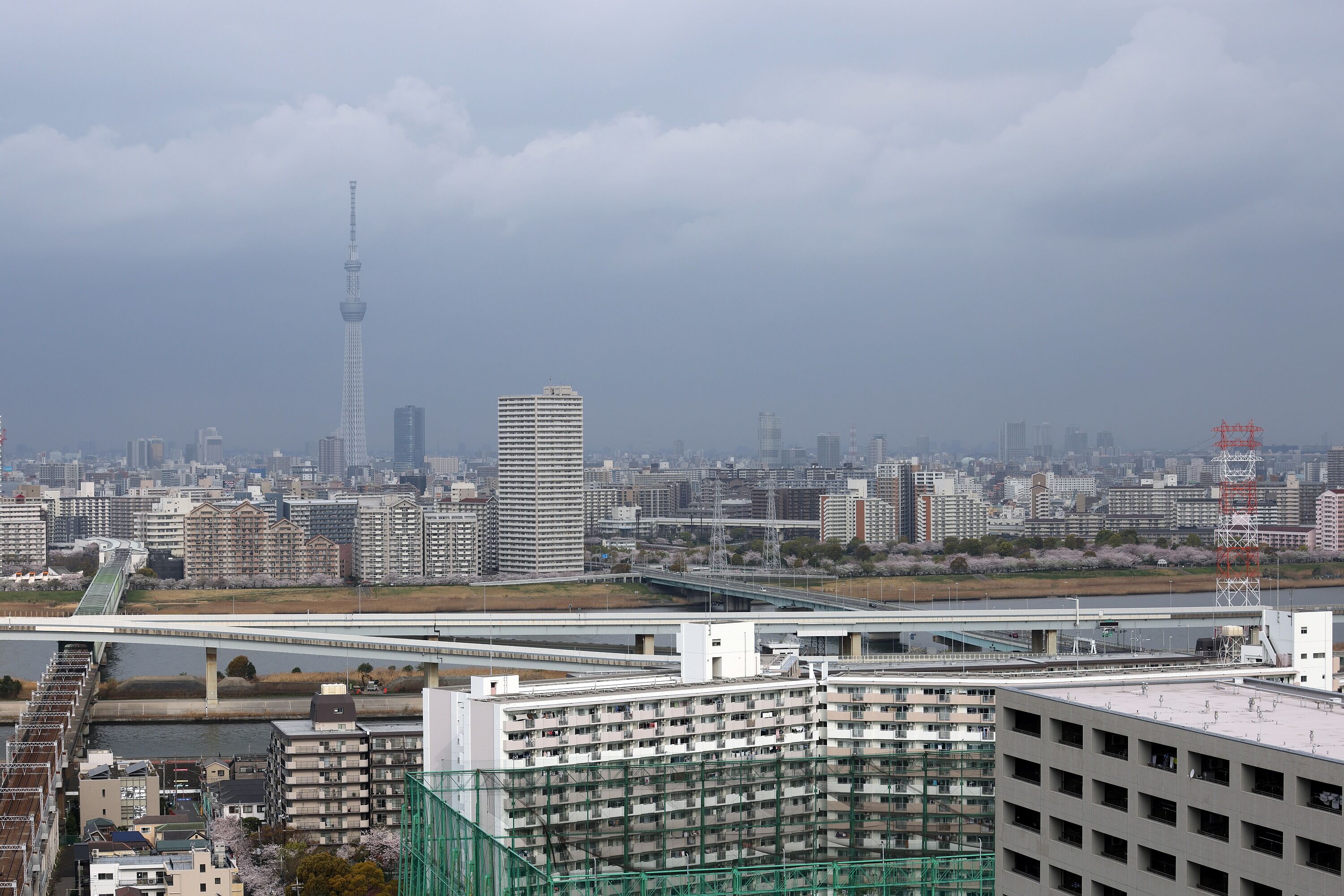 2021年3月28日、自宅マンションから撮影した東京スカイツリーです。いつもは真ん中にスカイツリーという日の丸構図ですが、小松川千本桜を入れたかったので左に寄せてみました。