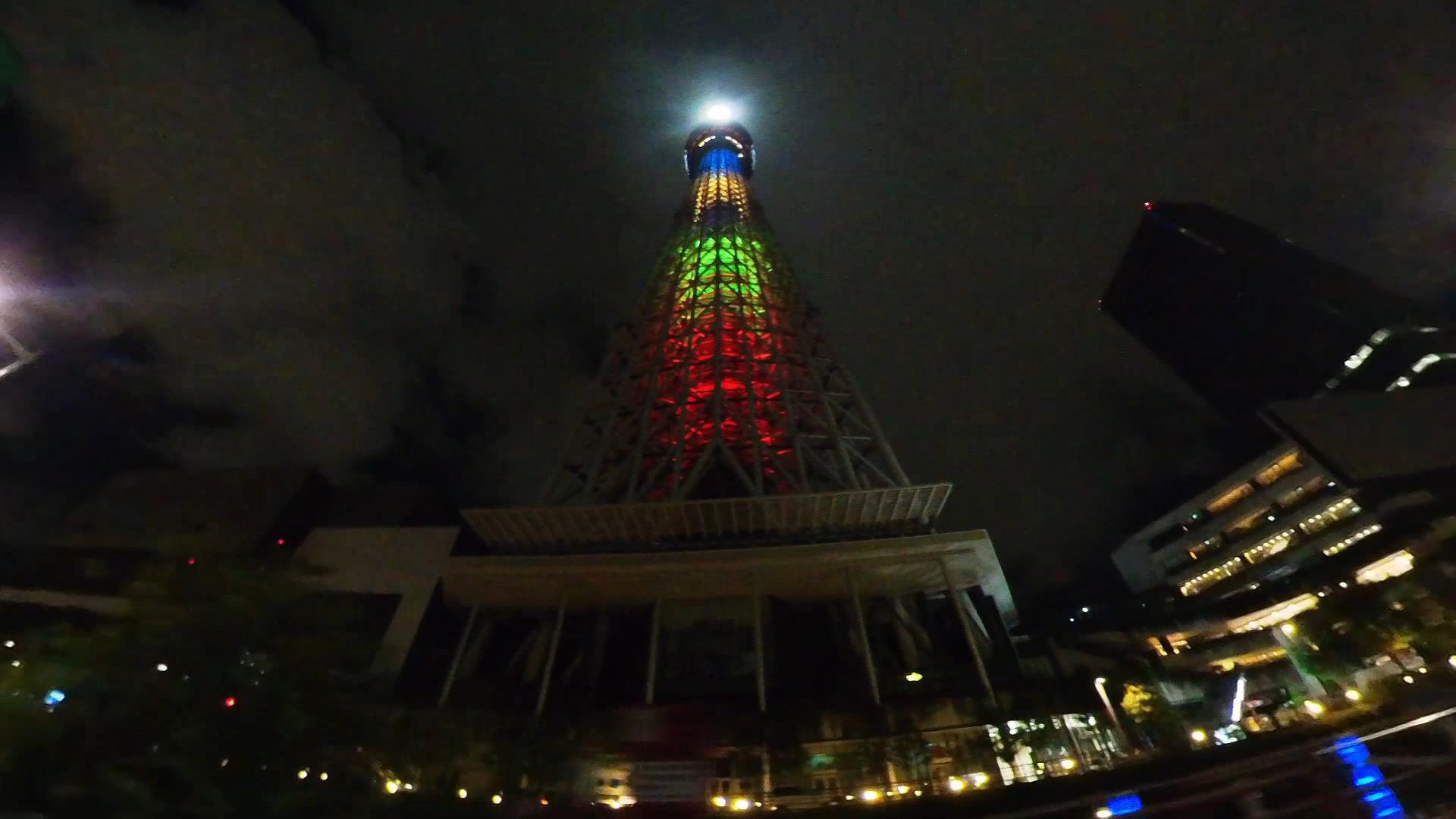 2021年7月25日にの深夜1時頃に車の屋根に360度カメラを載せて東京スカイツリーの周辺をドライブしてきました。オリンピック期間中なので深夜でも五輪カラーのライティングです。360度カメラで全方向撮影しているのでカメラが常に東京スカイツリーを向いているように動画を編集しています。