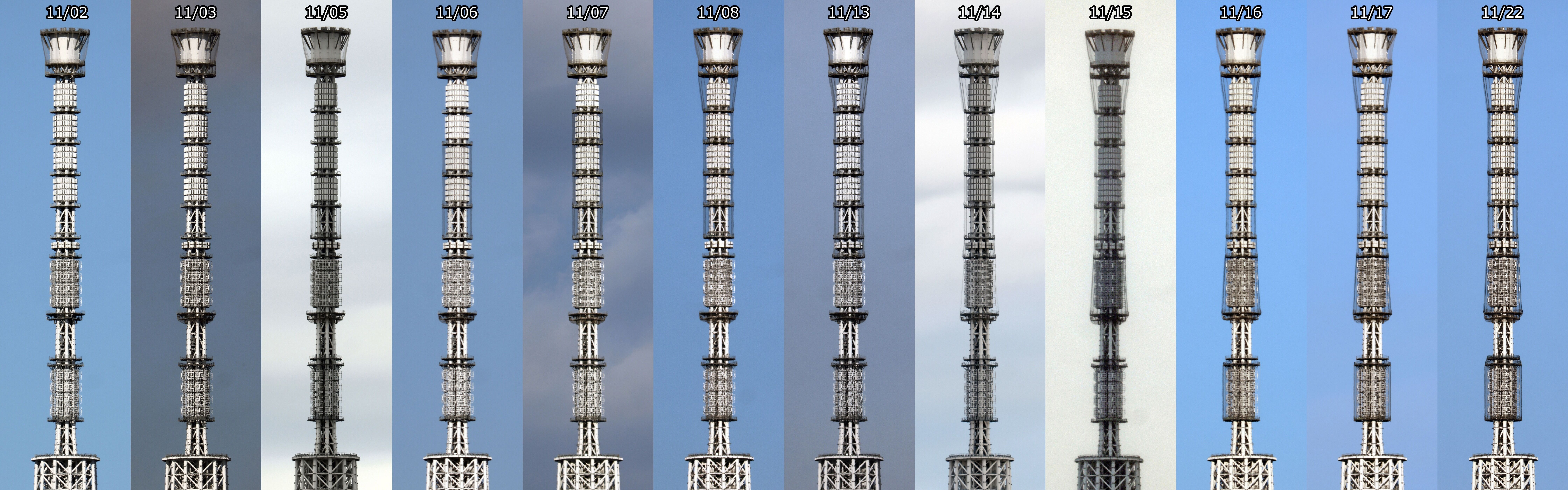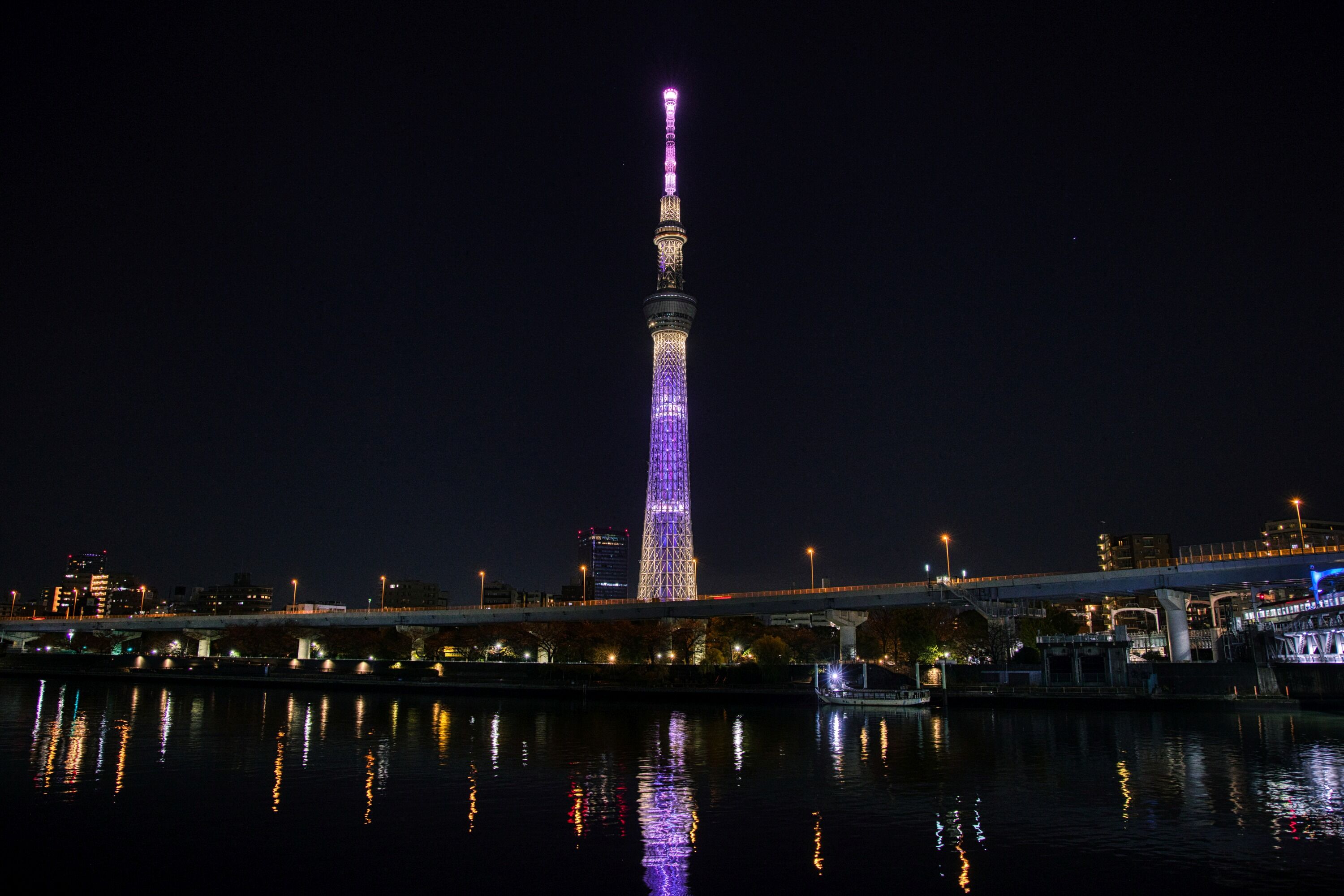 2022年11月27日に駒形橋横から撮影した東京スカイツリー夜景です。この日はK-POPグループの「SEVENTEEN」とのコラボイベント「SEVENTEEN THE CITY TOKYOSKYTREE」の開催を記念した特別ライティングでした。
