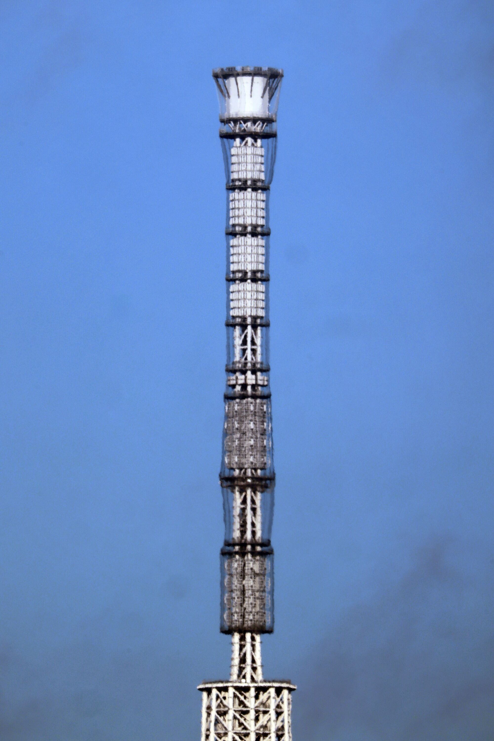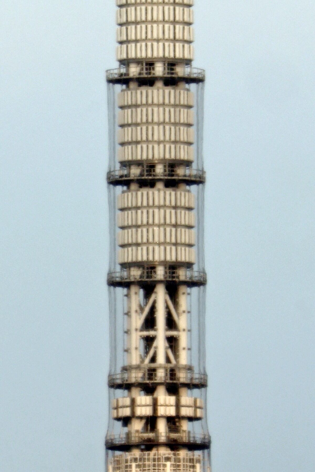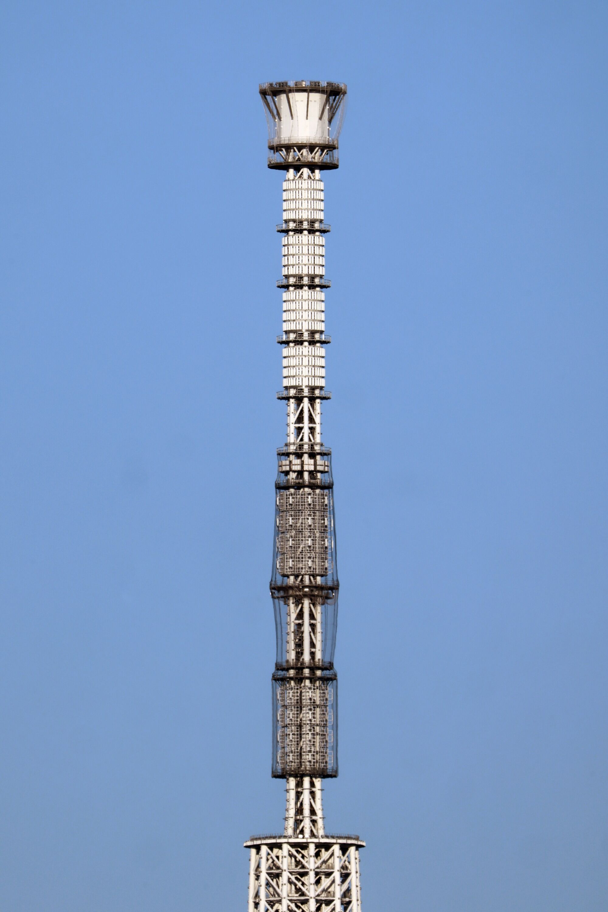 そんな写真のゲイン塔を拡大して見ると5段目に着雪防止ネットのロープが張られていました。これはお昼頃の撮影のため、この後にネットも設置されたのかもしれません。昨日はたまたまスカイツリーが見える場所に撮りに行って撮影していて良かったです。