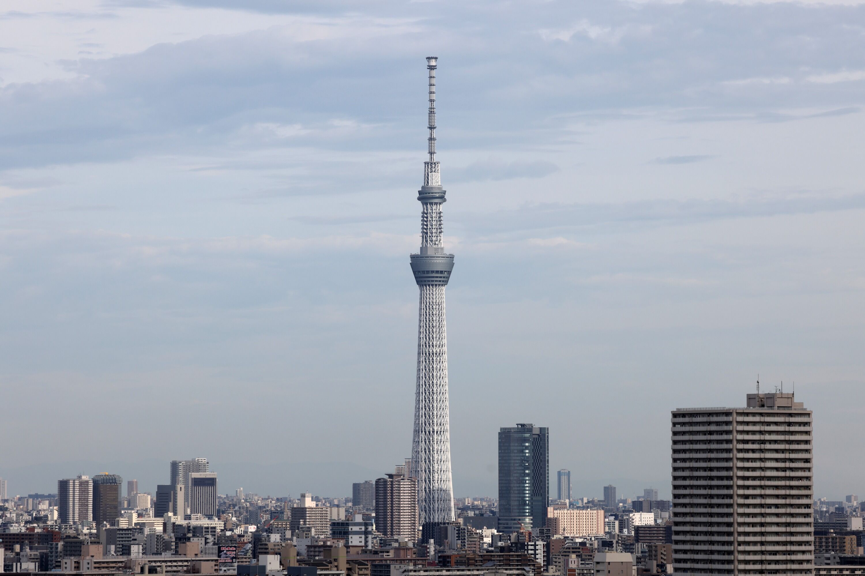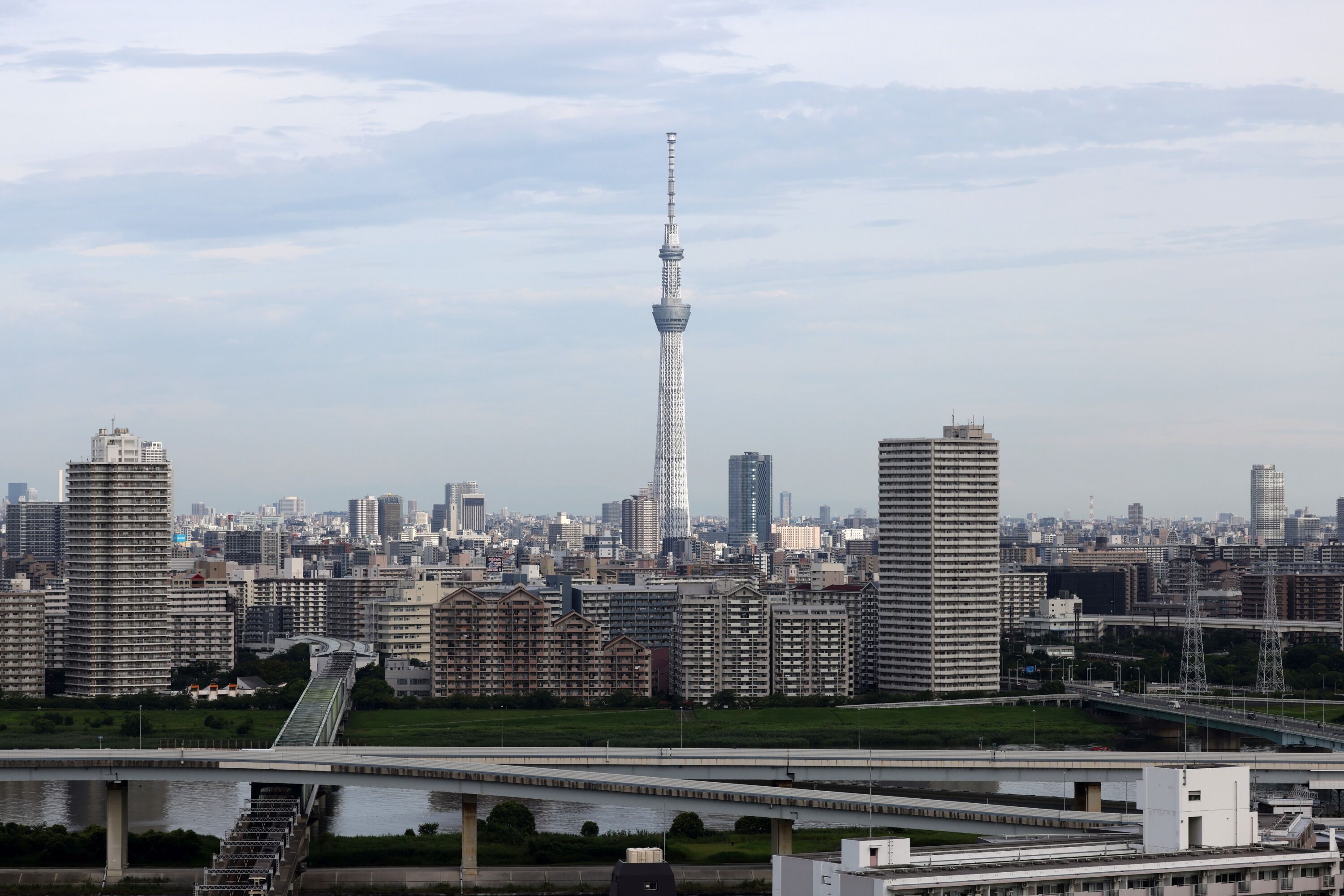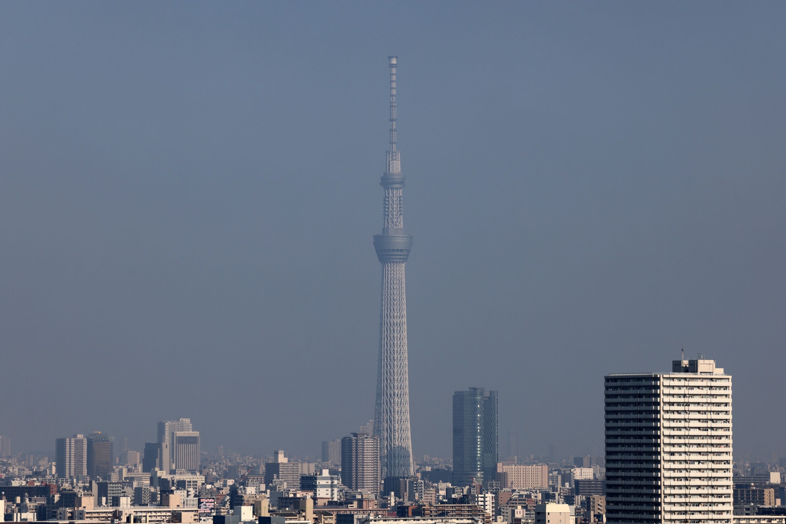 2024年7月25日、自宅マンションから撮影した東京スカイツリーです。今朝は晴れ。パッと見た感じでは澄んだ視界ではありませんが、夏の視界測定タワマン「ザ・タワー十条」がクッキリ見えています。