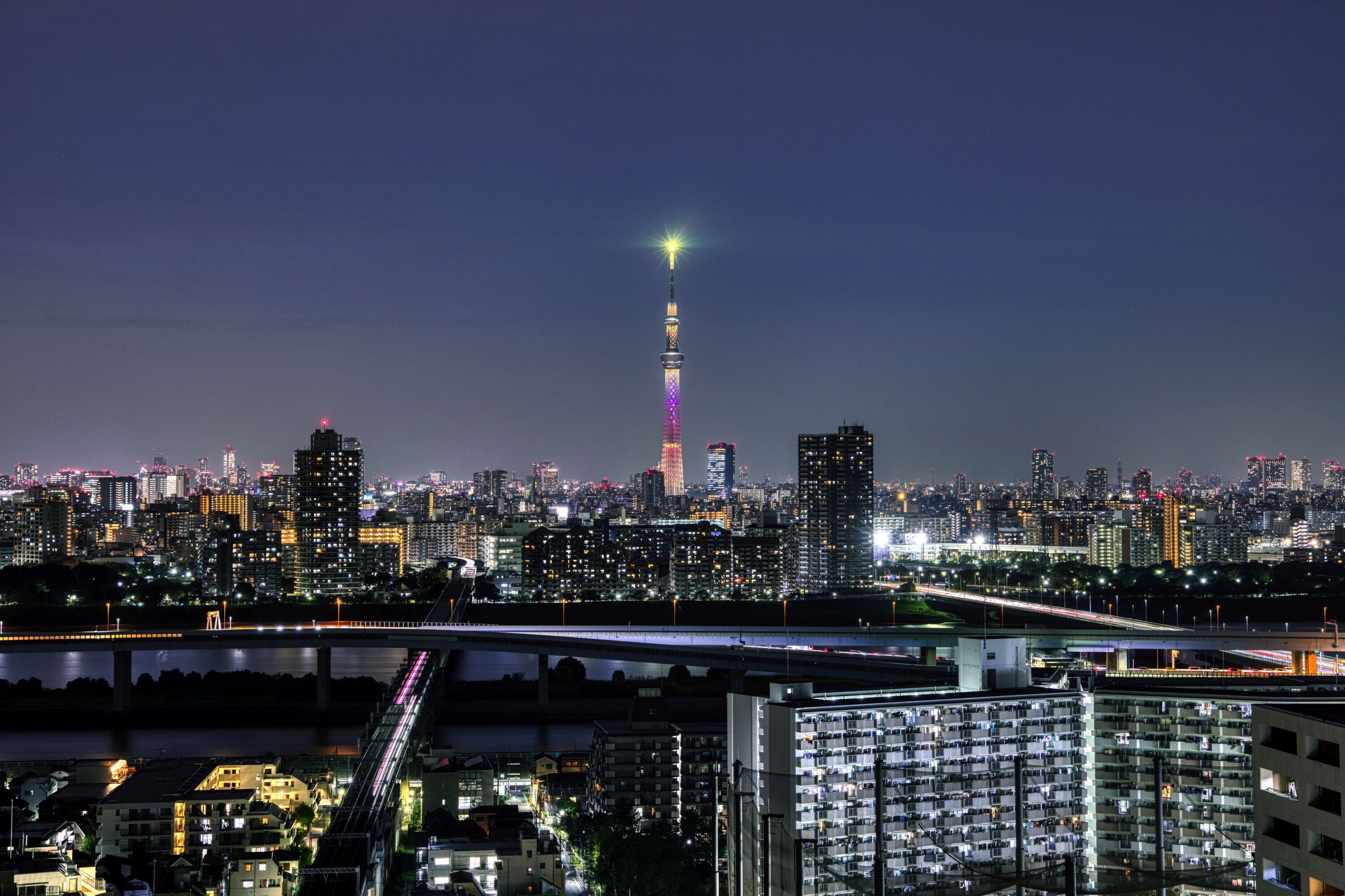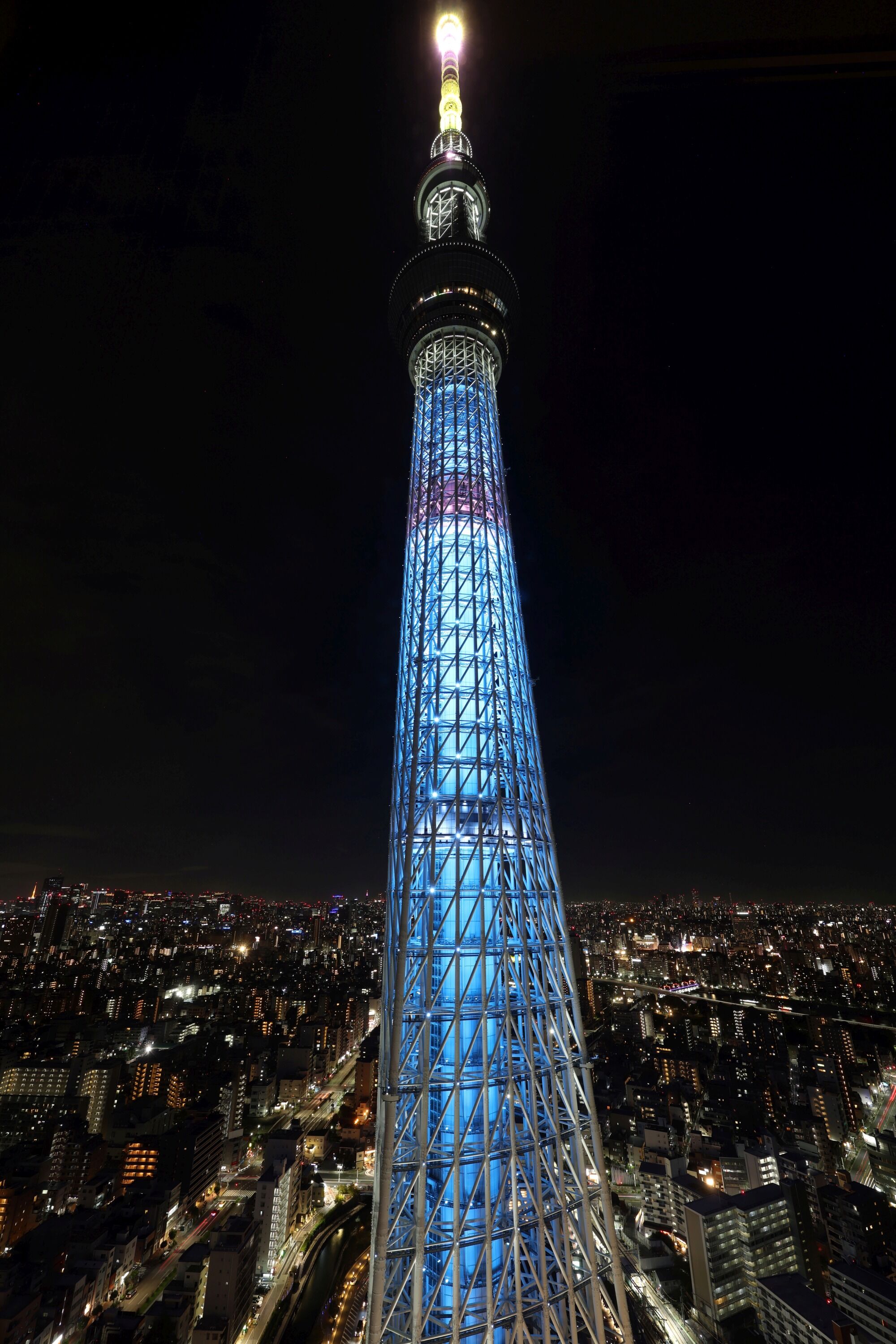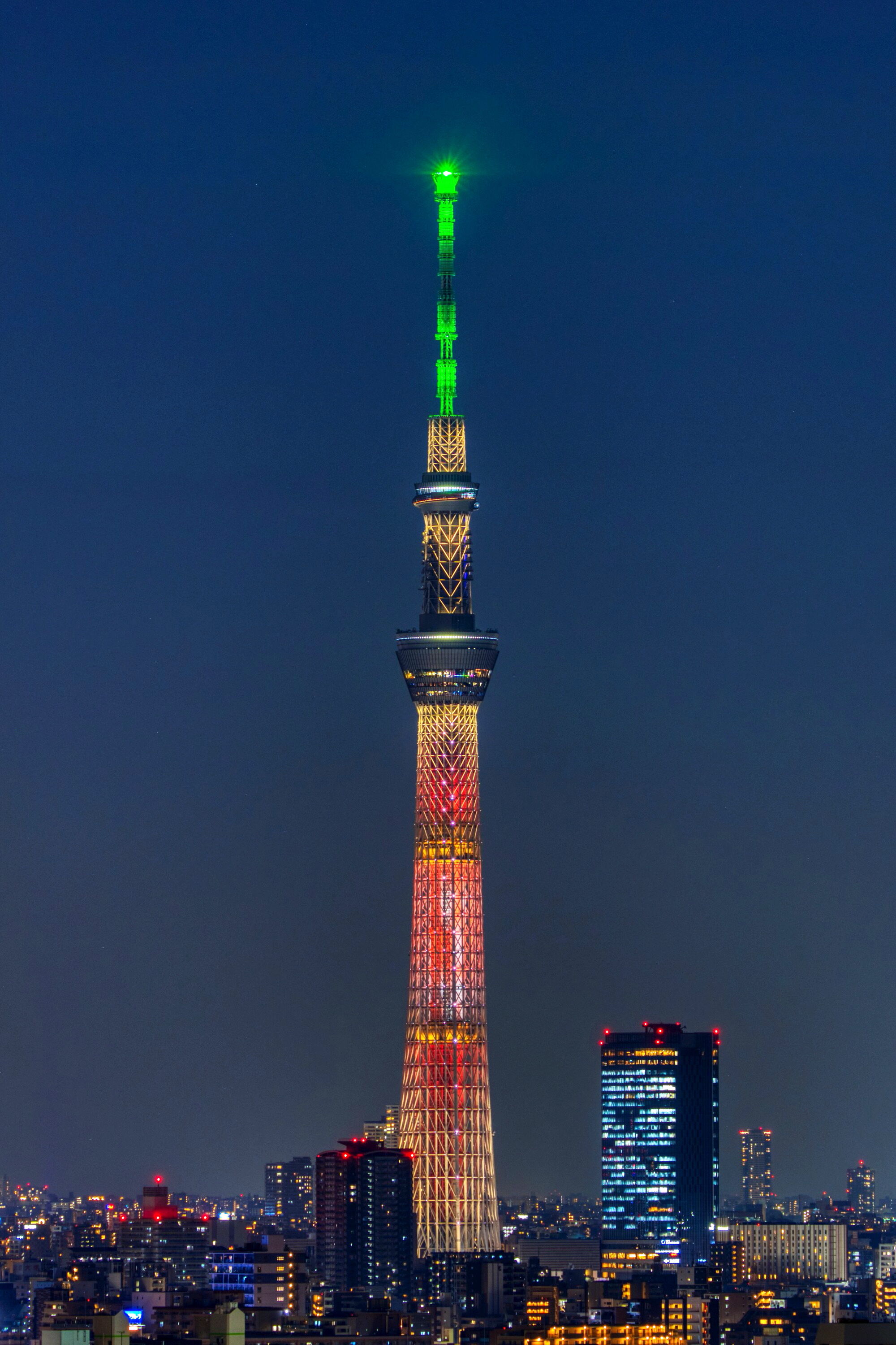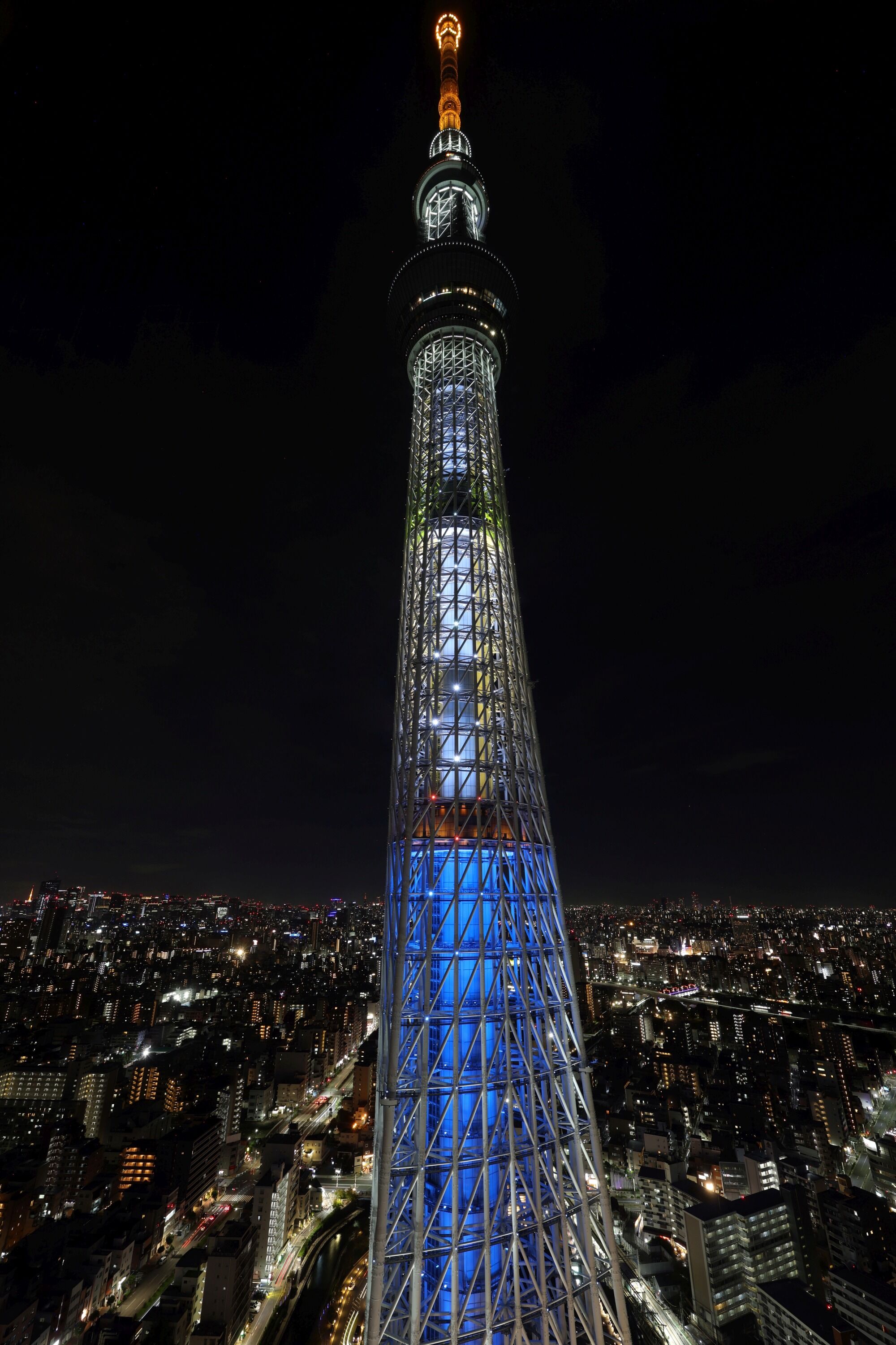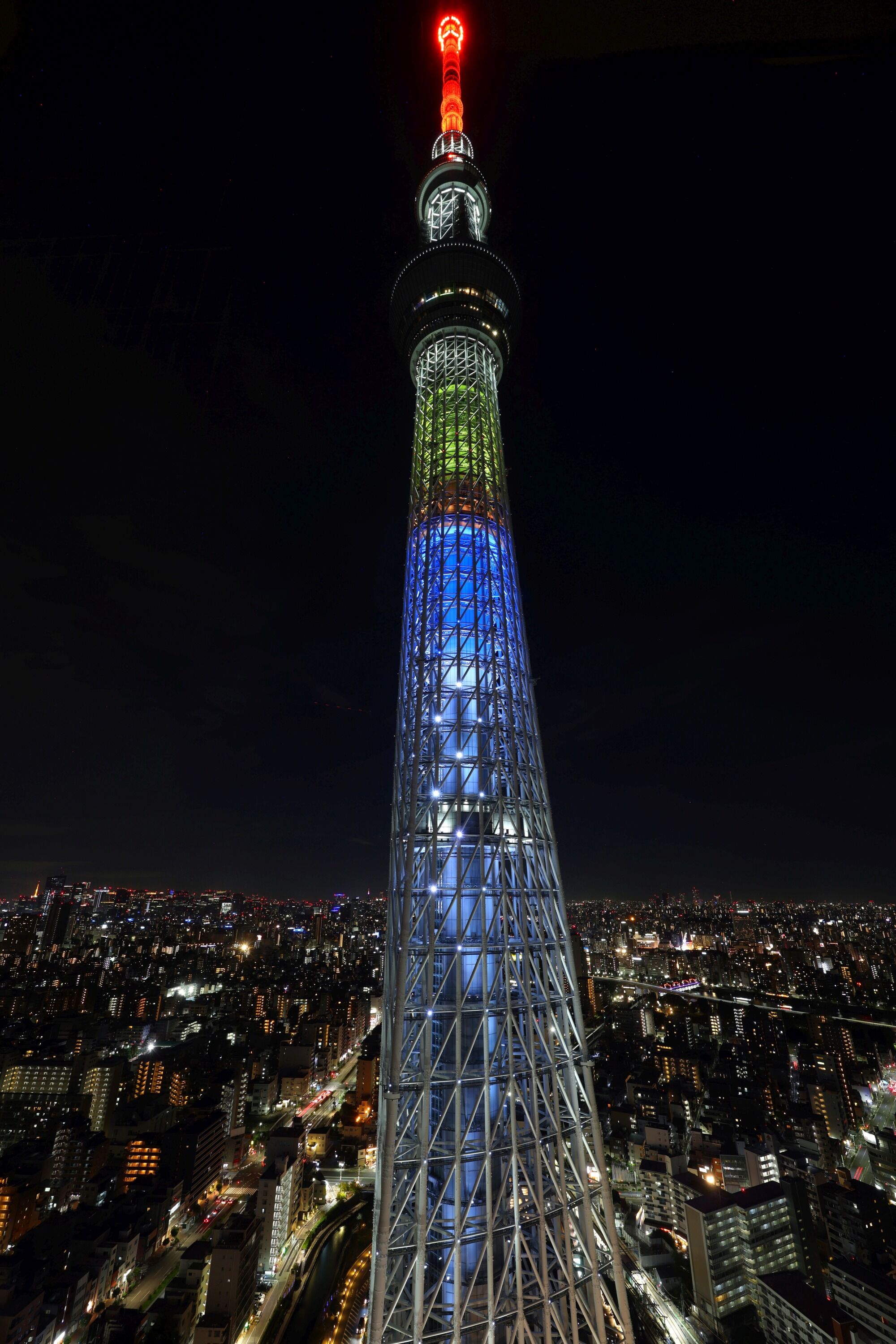 2025年10月29日、隅田川橋梁と東京スカイツリー夜景です。この日はハロウィン限定ライティングで、隅田川橋梁もハロウィンっぽいライティングになっていました。こちらはミステリアスで幻想的な月夜をイメージした「ムーンライト・ハロウィン」です。