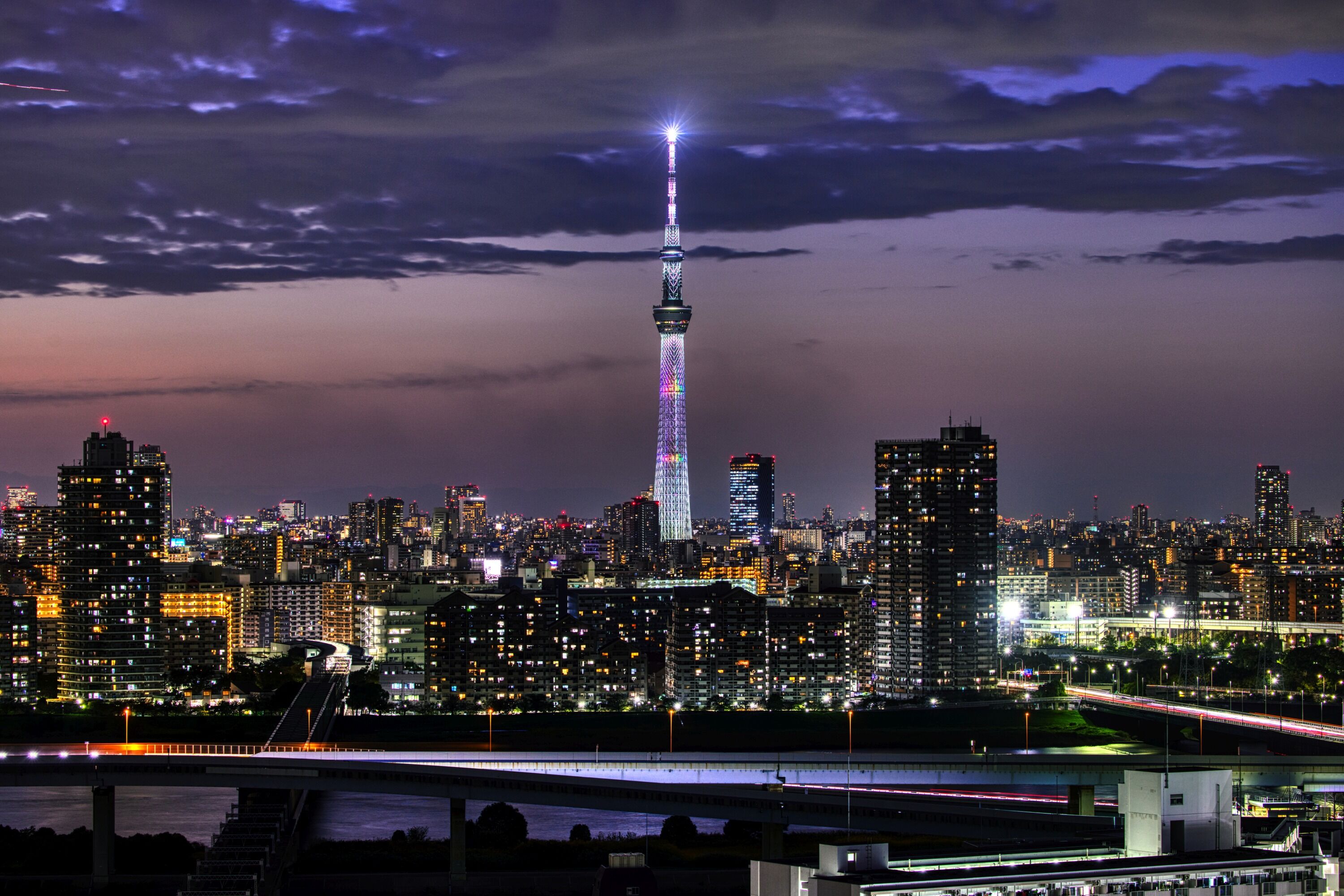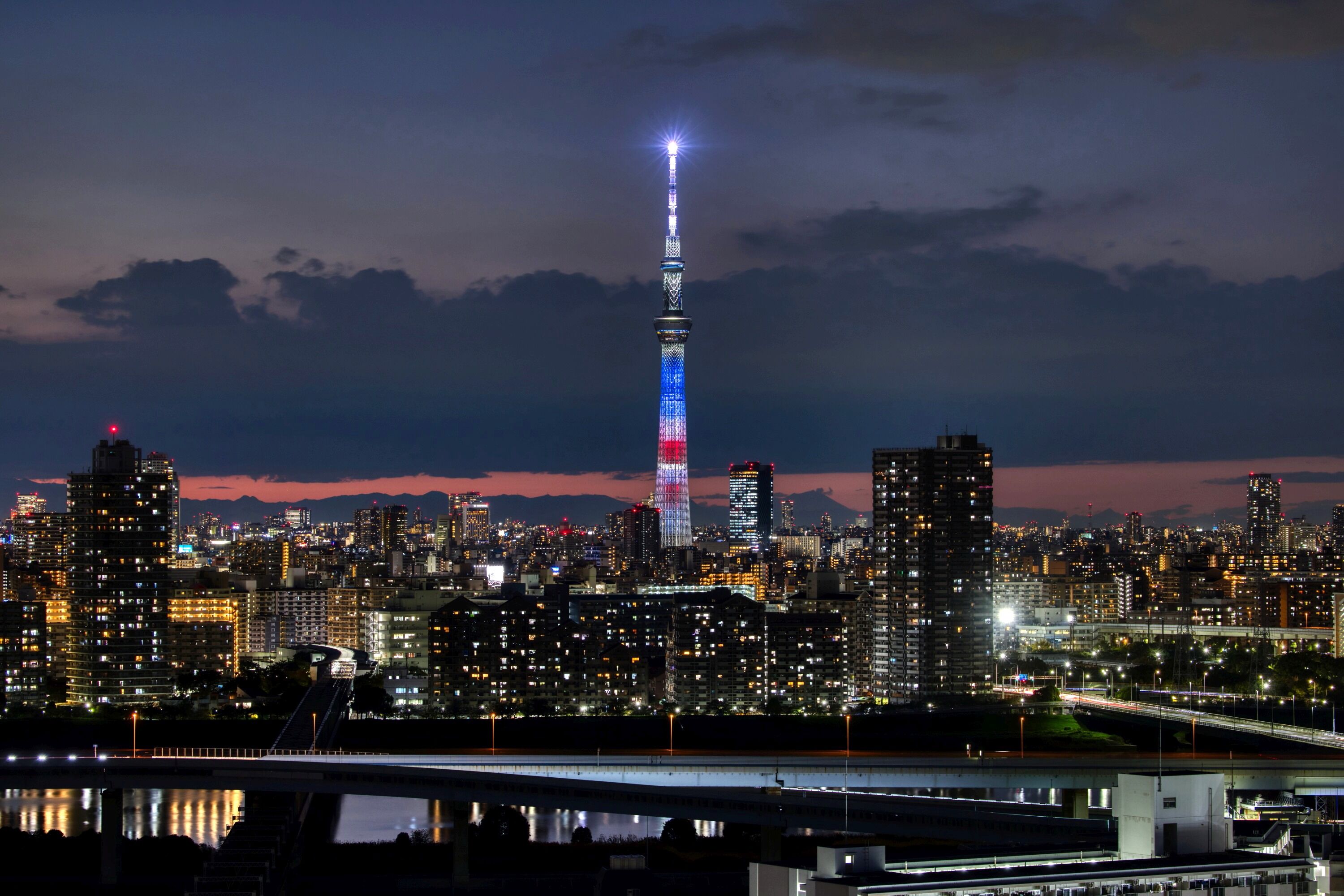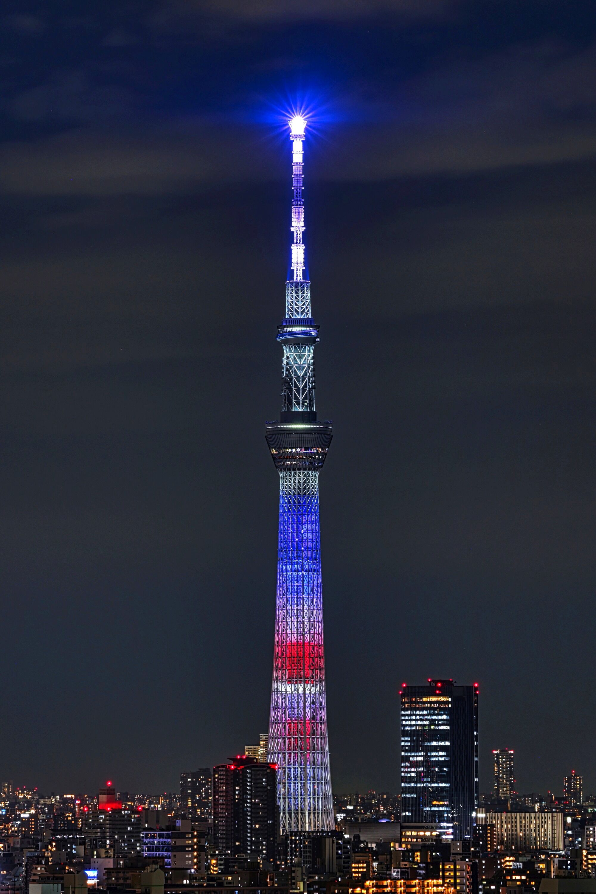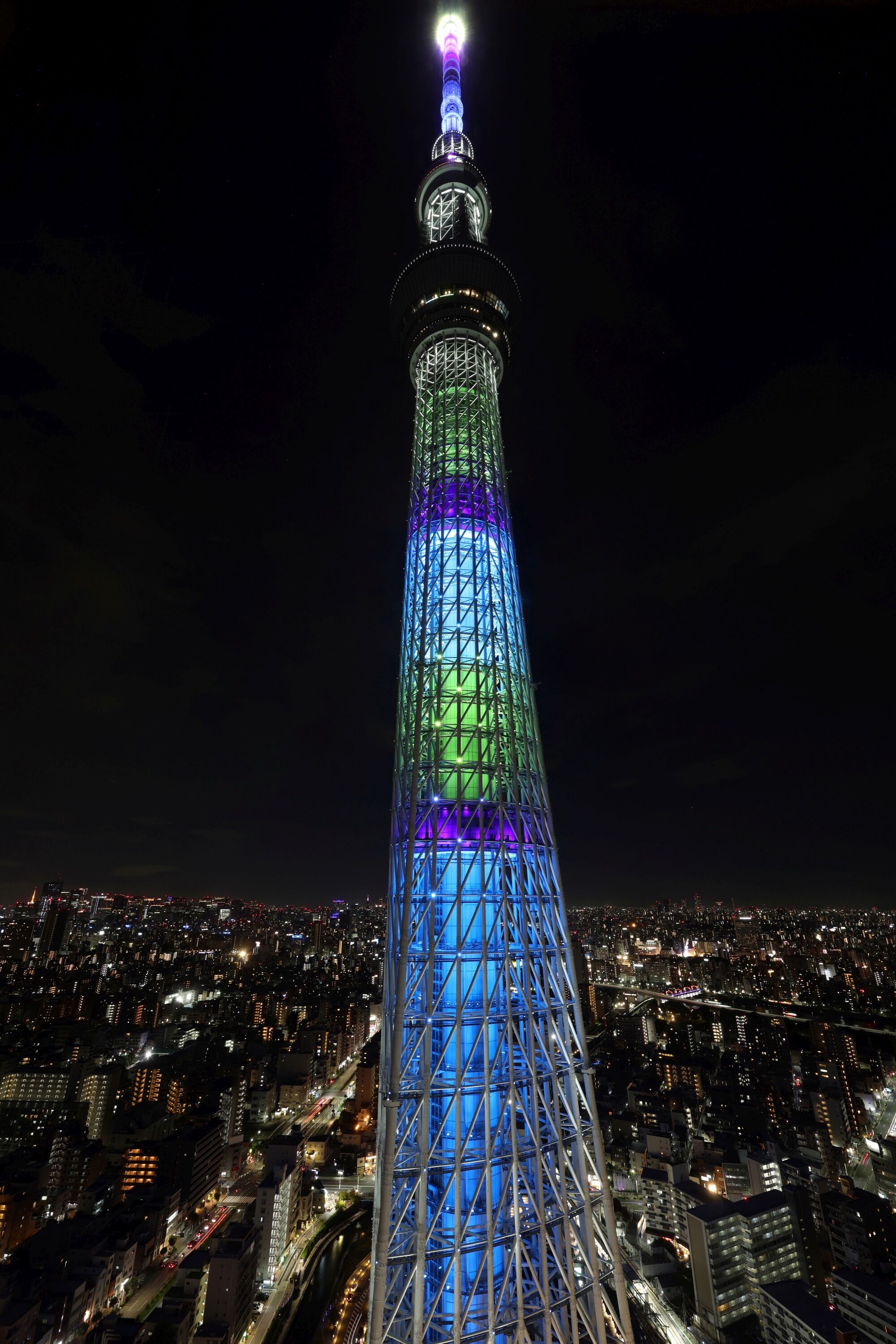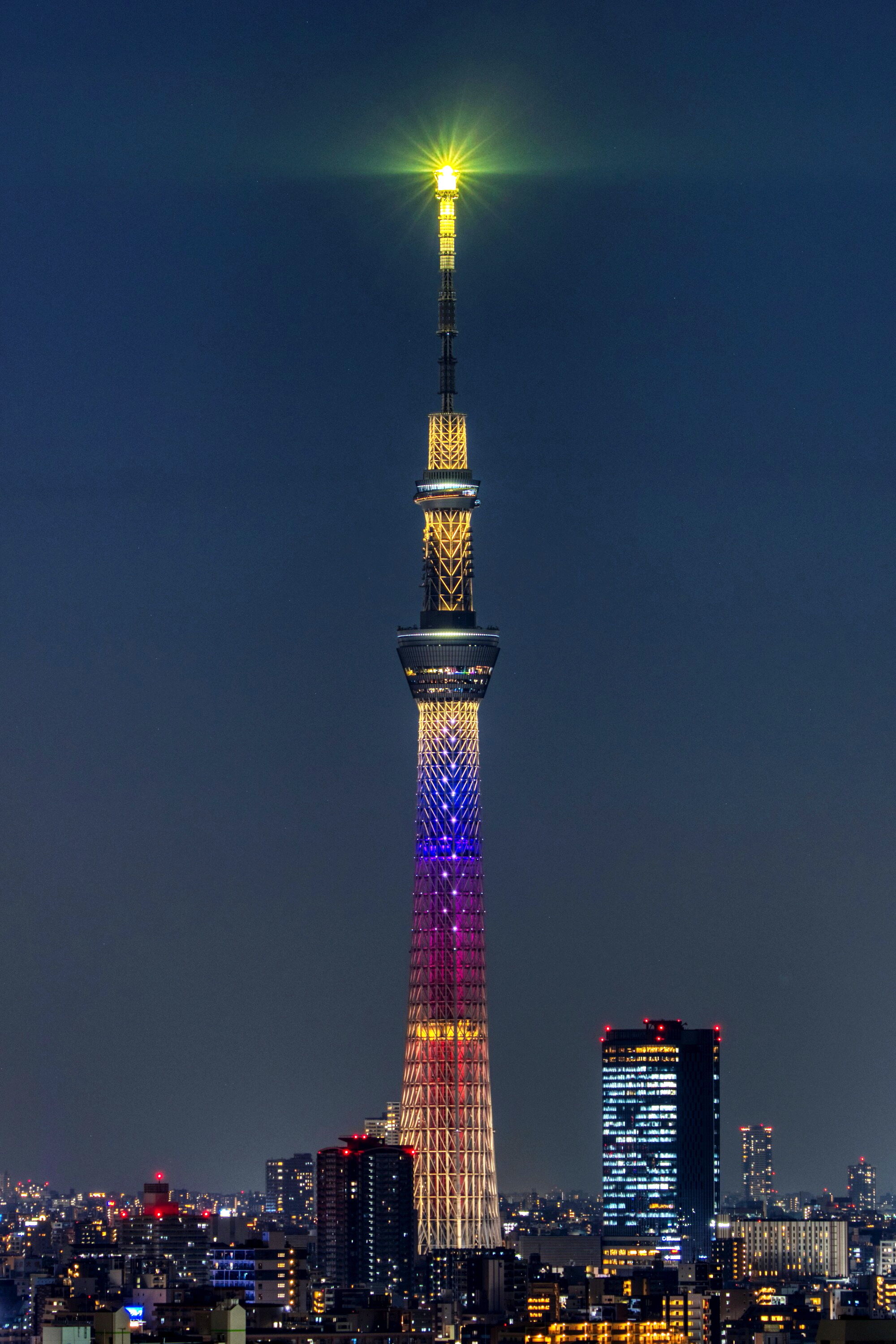 2025年10月29日、隅田川橋梁と東京スカイツリー夜景です。この日はハロウィン限定ライティングで、隅田川橋梁もハロウィンっぽいライティングになっていました。こちらはミステリアスで幻想的な月夜をイメージした「ムーンライト・ハロウィン」です。