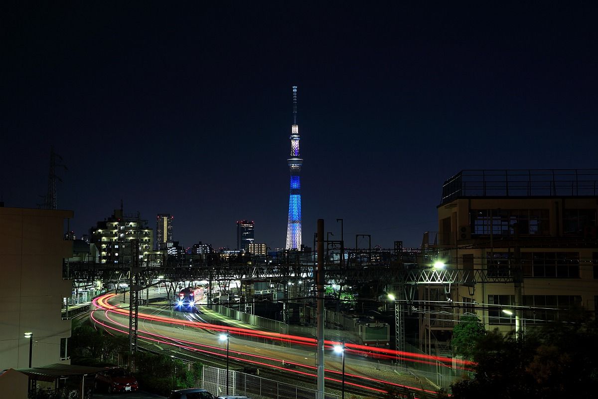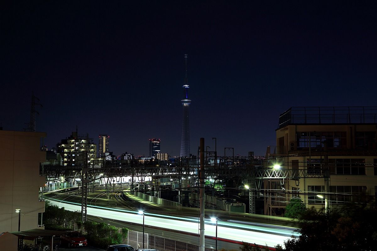鐘ヶ淵駅に出入るする電車の光跡がカーブを描く有名な撮影スポットですが、先客がいることはほとんどありません。が、今回は珍しく先客が一人だけいました。