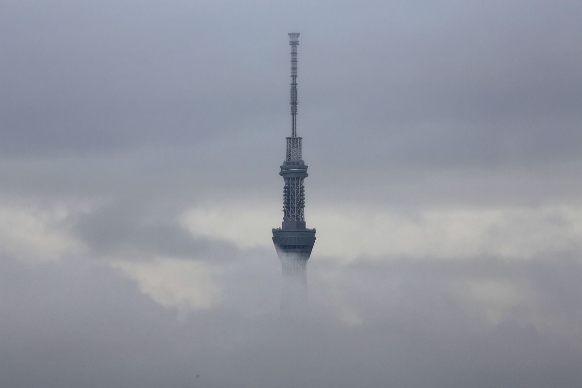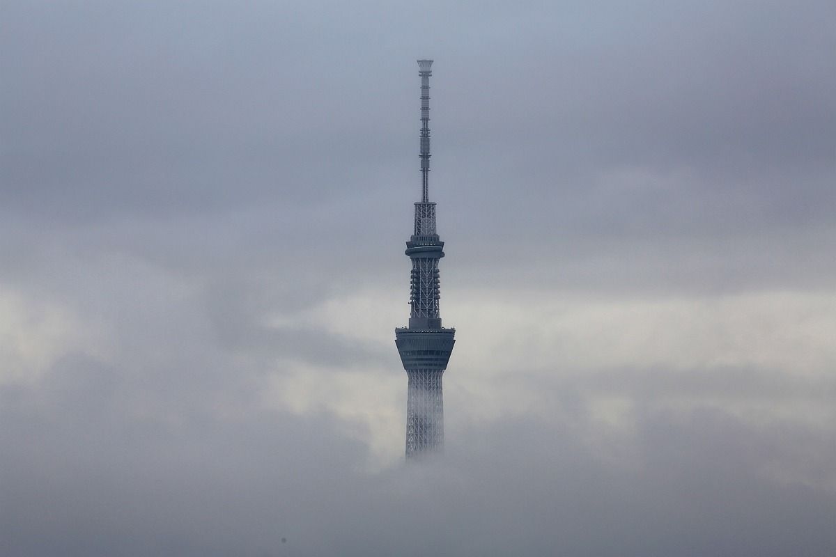 東京スカイツリーの着雪防止ネット設置状況(2025年11月9日)