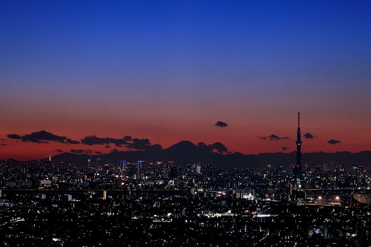 2011年12月24日「東京スカイツリー」です。この日のクリスマスライトアップは、市川駅前のアイリンクタウンいちかわの展望台から撮ろうと17時くらいに行きました。富士山が見えるかどうかは怪しかったのですが、なんとか富士山が頭を出していました。