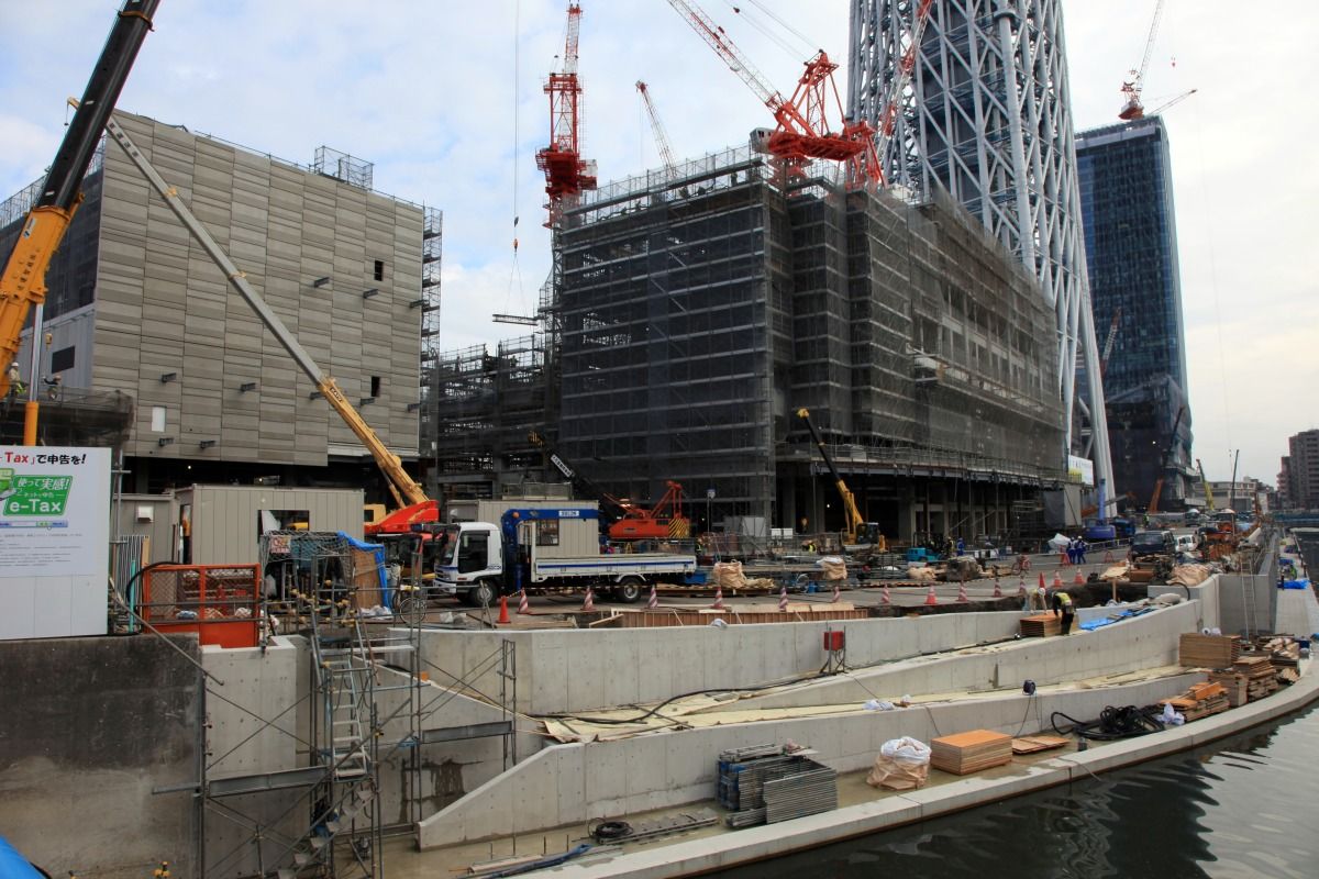 イーストタワーとスカイツリーの間です。着々と工事が進んでいます。