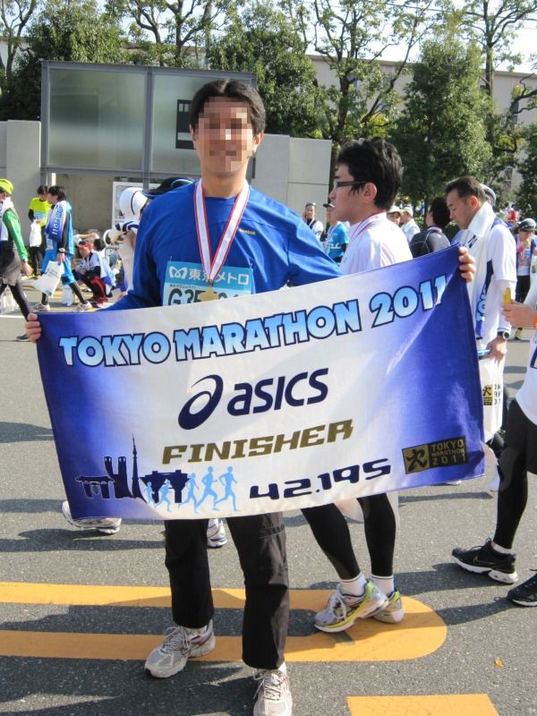 ゴール後です。フィニッシャータオルです。左下に雷門、都庁、東京タワー、ビックサイトの絵がありますが、スカイツリーは入っていませんでした。今後もコースが変わることがなければスカイツリーの絵は入らないかもですね。