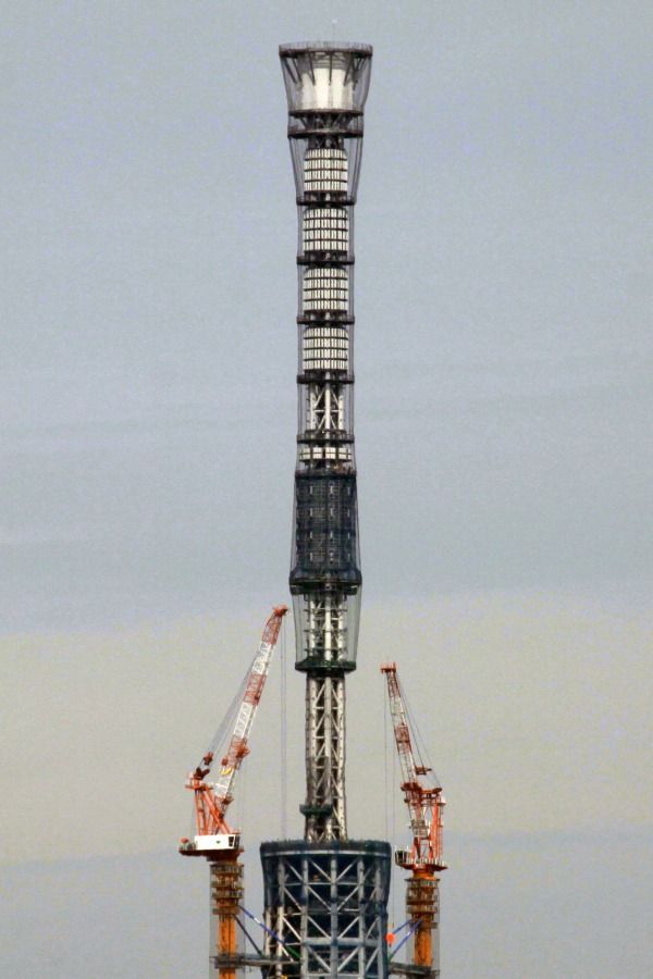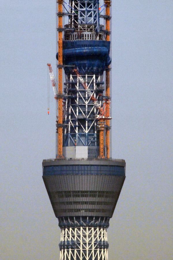 ゲイン塔部分の超望遠です。ゲイン塔の根元付近に防護ネットのようなものが取り付けられました。これも何をしようとしているのかはよくわかりません。。