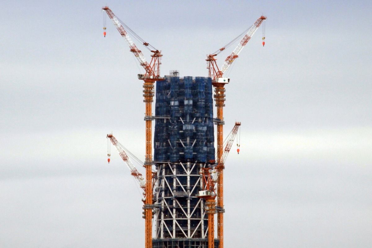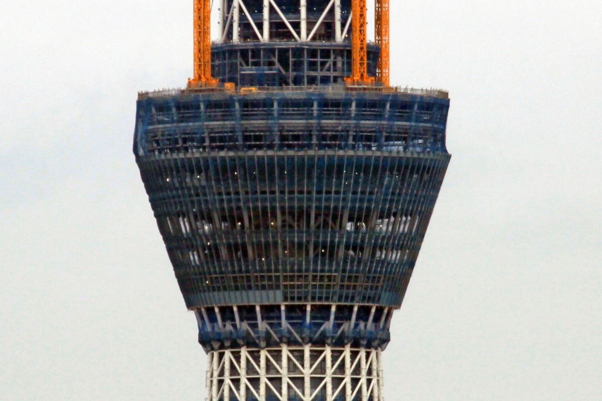 第一展望台部分の超望遠です。カーテンウォールの工事が始まっていると聞いているのですが、展望台の一番下の白い部分がそれなのでしょうか?よくわかりませんが、今後は第一展望台部分の超望遠も載せて行こうと思います。