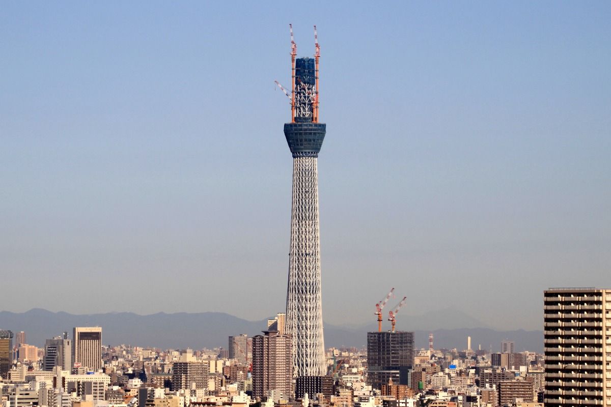今日は晴天です。視界もかなり良好です。久しぶりにかなり気持ちのいい青空です。が、昨日は強風のためかタワークレーンが動いていなかったので、スカイツリーに変化は見当たりません。よって今日は超望遠はなしにして、ツイッターで好評だった昨日の景色を2枚載せておきます。