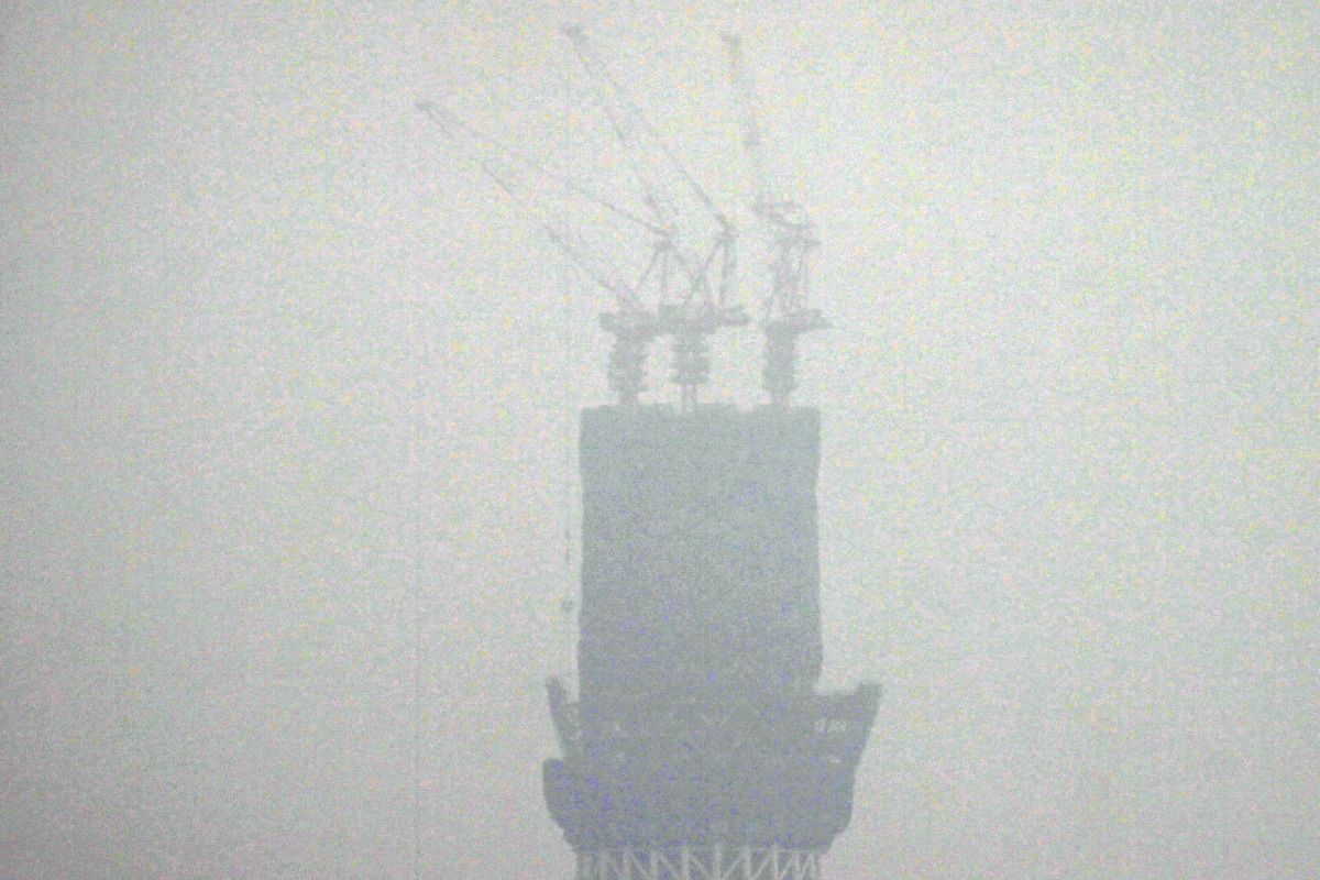 超望遠です。色調補正しても工事がどれくらい進んでのかよくわかりません。ただ、中央のクレーンで展望台部分の2段目を吊っているのがわかります。あっという間に二段目もグルリと出来てしまいそうですね。