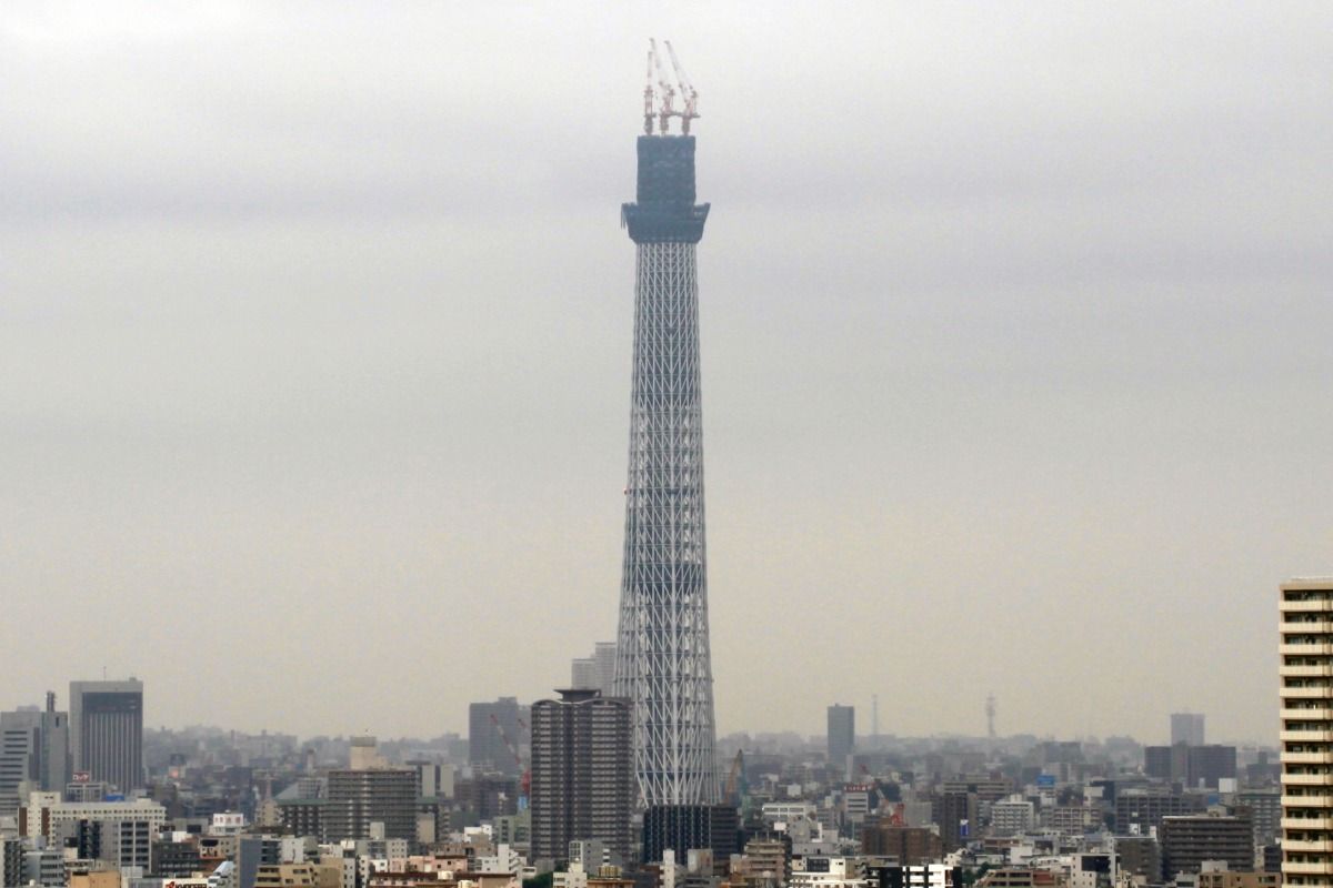 今までのスカイツリーは縦に伸びるだけで巨大な塔という感じでしたが、展望台部分が姿を現して来ると、いつも見かけるスカイツリーのCGと絵が重なって、ようやく東京スカイツリーが姿を現して来たなと今になって感じます。