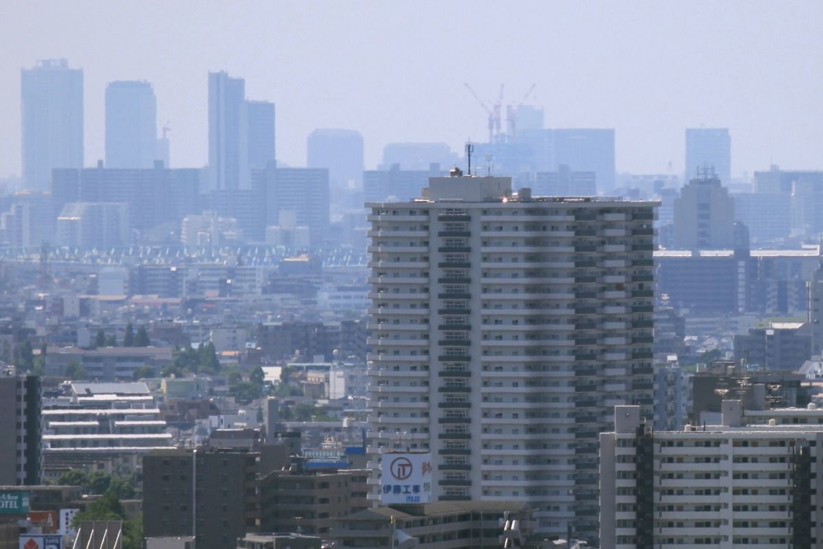 これは友人が住む「ハーモネスタワー松原」からの眺めです。中央のタワーマンションが東武伊勢崎線の谷塚駅前に建つ「谷塚コリーナ ライオンズタワー谷塚」で地上25階、高さ81.9mです。