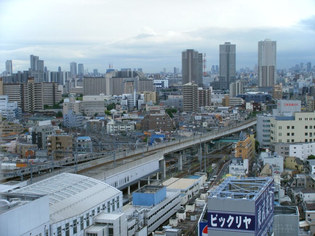 これは「北千住マルイ」の屋上からの眺めです。右のタワーマンション群が南千住です。中央の2番目に高いのが「リバーハープタワー南千住」で地上38階、高さ129.8mです。以前はそこの34階に住んでいました。