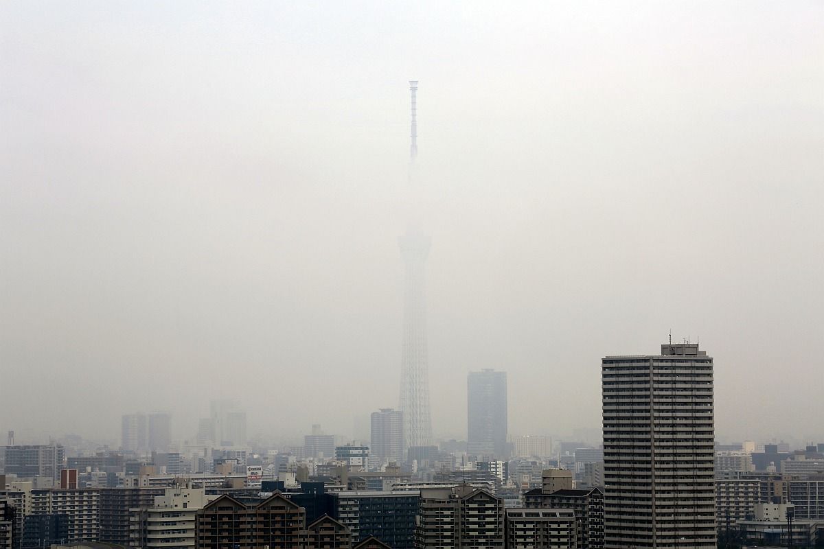 東京スカイツリーの着雪防止ネット設置状況(2025年11月9日)