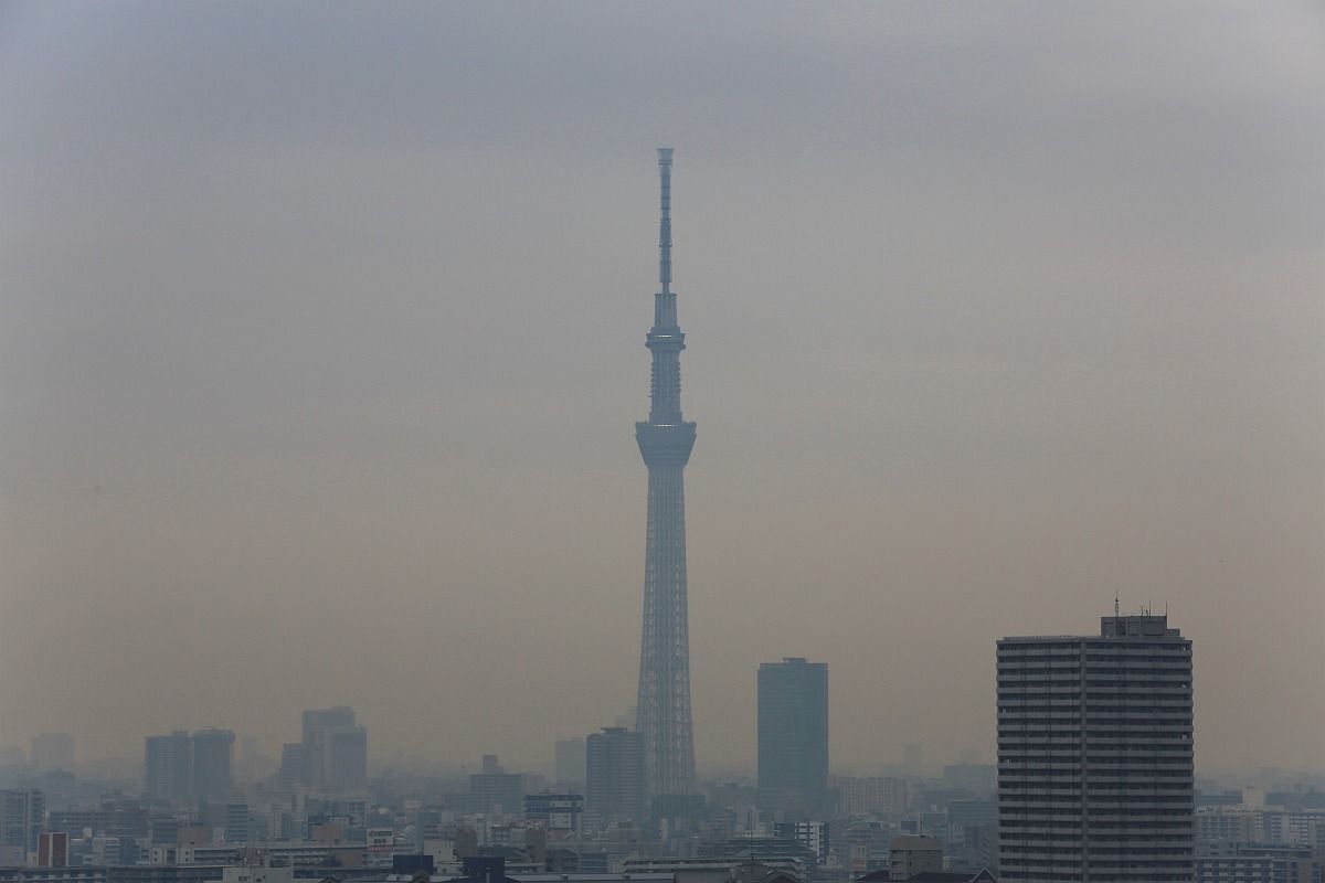 東京スカイツリーの着雪防止ネット設置状況(2025年11月9日)