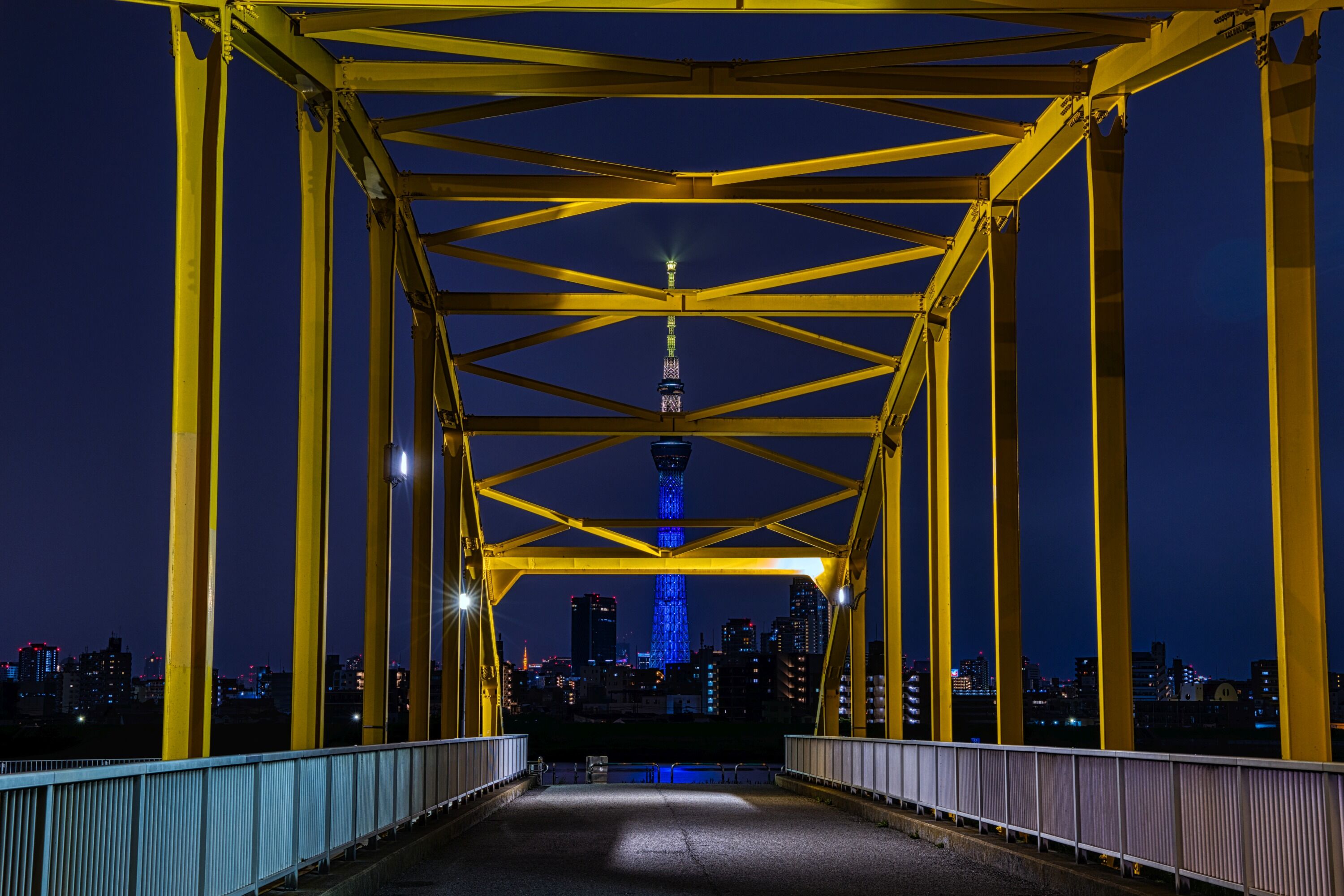 スカイツリー全体が見える定番の撮影スポットとして一応ここからほぼ毎回撮っていますが、周辺に何もないためスカイツリーの高さ感がわからないですね。何の知識もなくここでこの光景を見たら、高さが600mを超えていると思う人はいないのではと思います。
