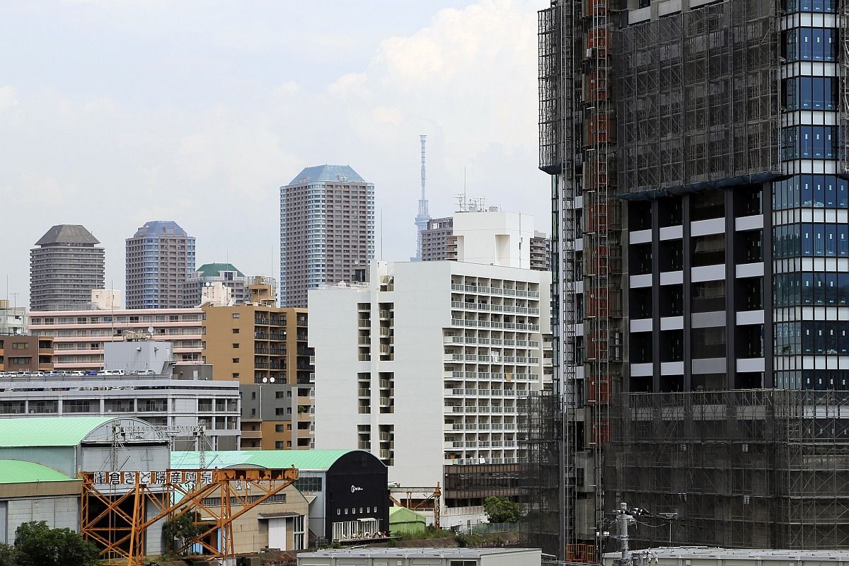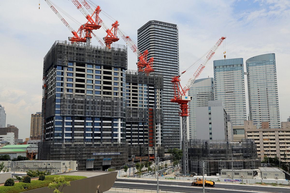 晴海の中央清掃工場からの眺めです。目の前では住友不動産の分譲のツインのタワーマンション「ドゥ・トゥール」が建設中です。以前はこの方向に「東京スカイツリー」が見えていたのですが、ここまで建設が進んだので見えなくなってしまいました。。
