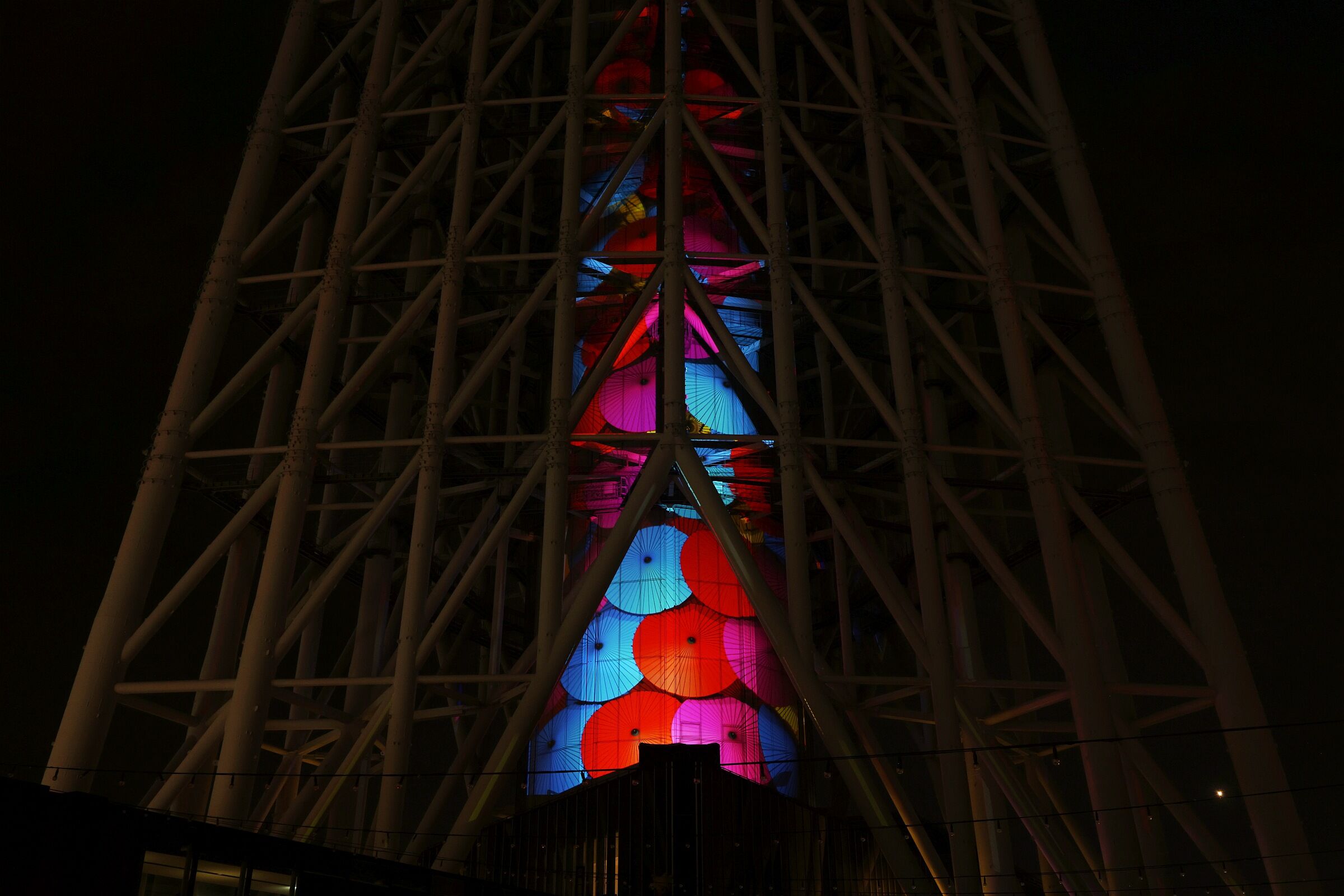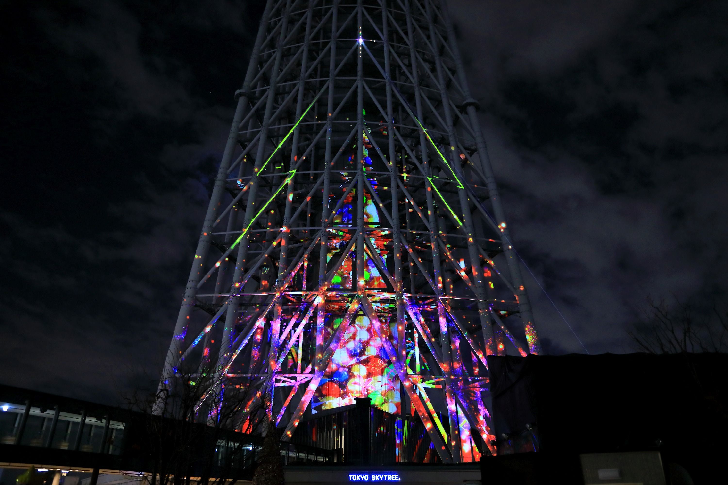 今年のプロジェクションマッピングは今までで一番良かったと思います。贅沢を言うなら投影範囲をどんどん上まで拡張してスカイツリー全体を使ってやって欲しいです。ただ、プロジェクションマッピングの対象範囲が広がれば広がるほど難しくなってお金もかかりそうですね。