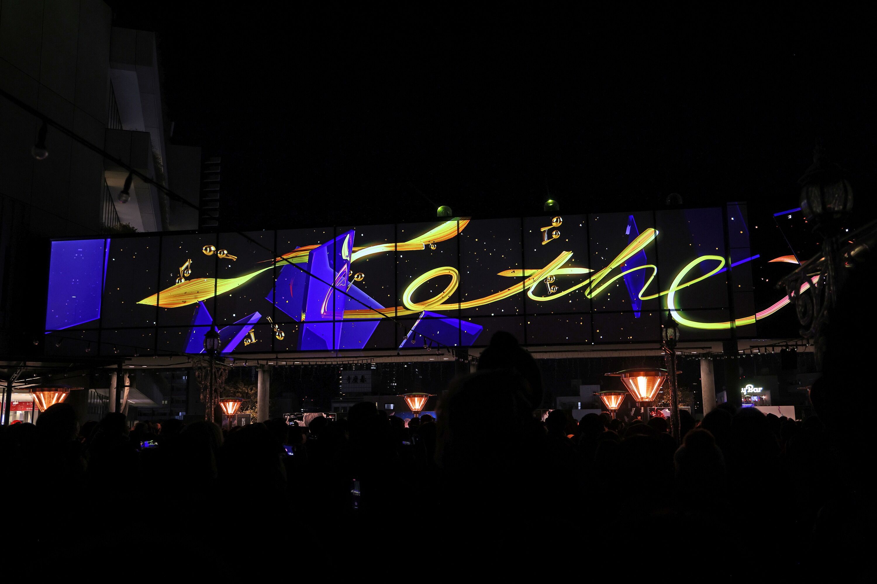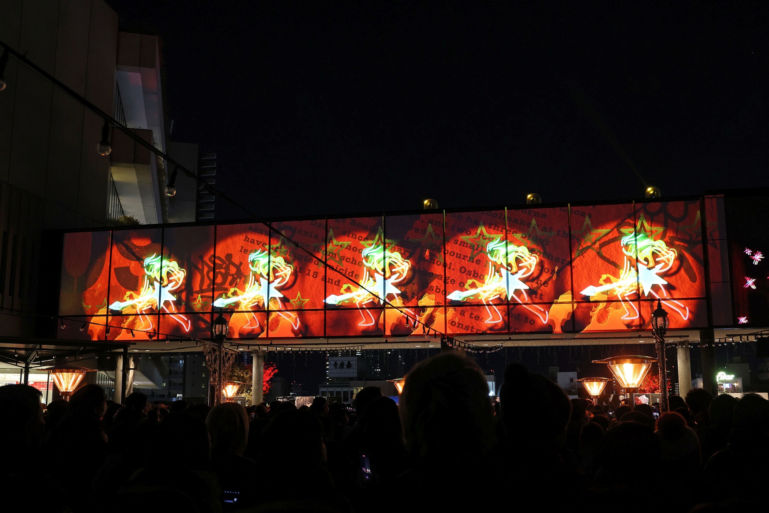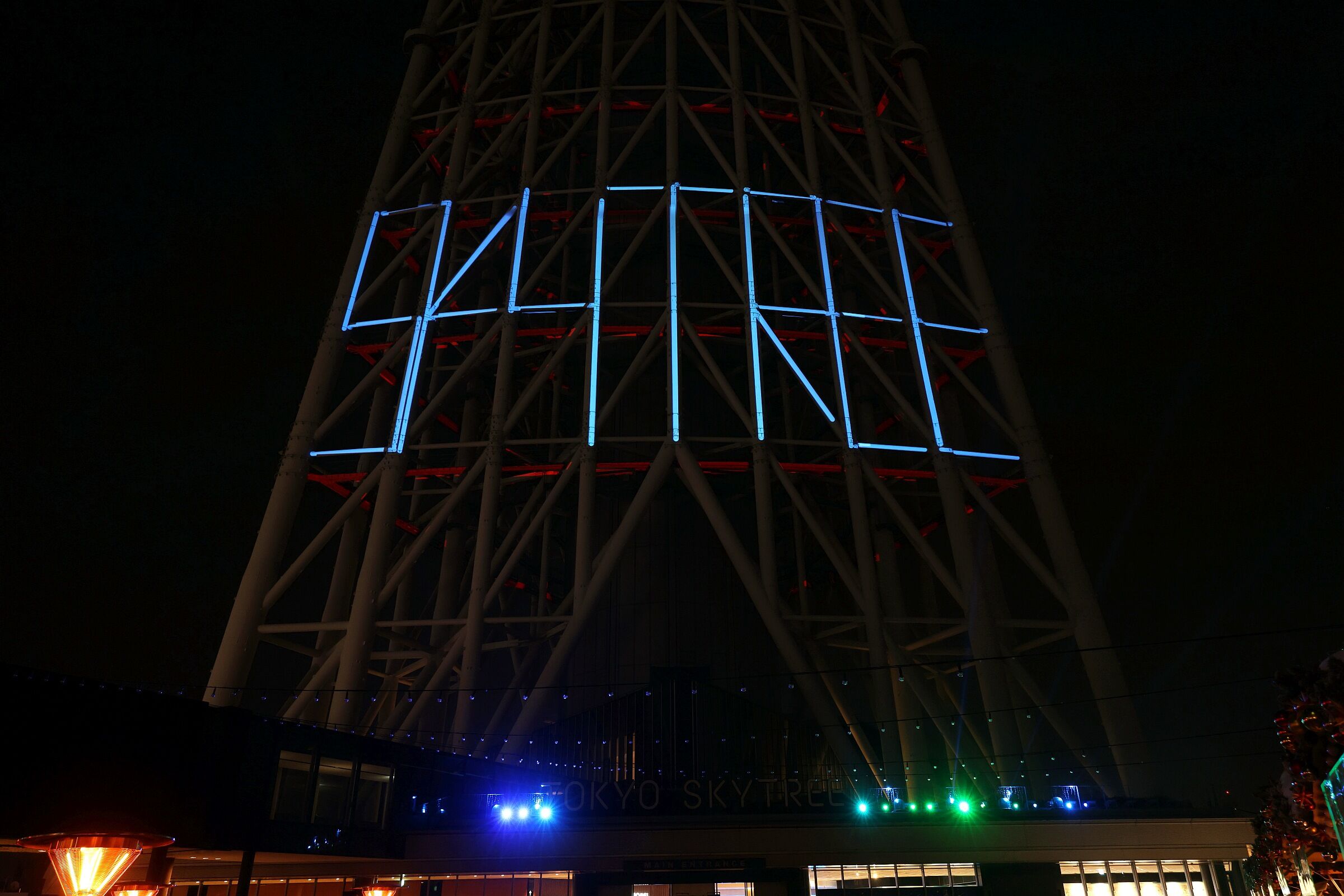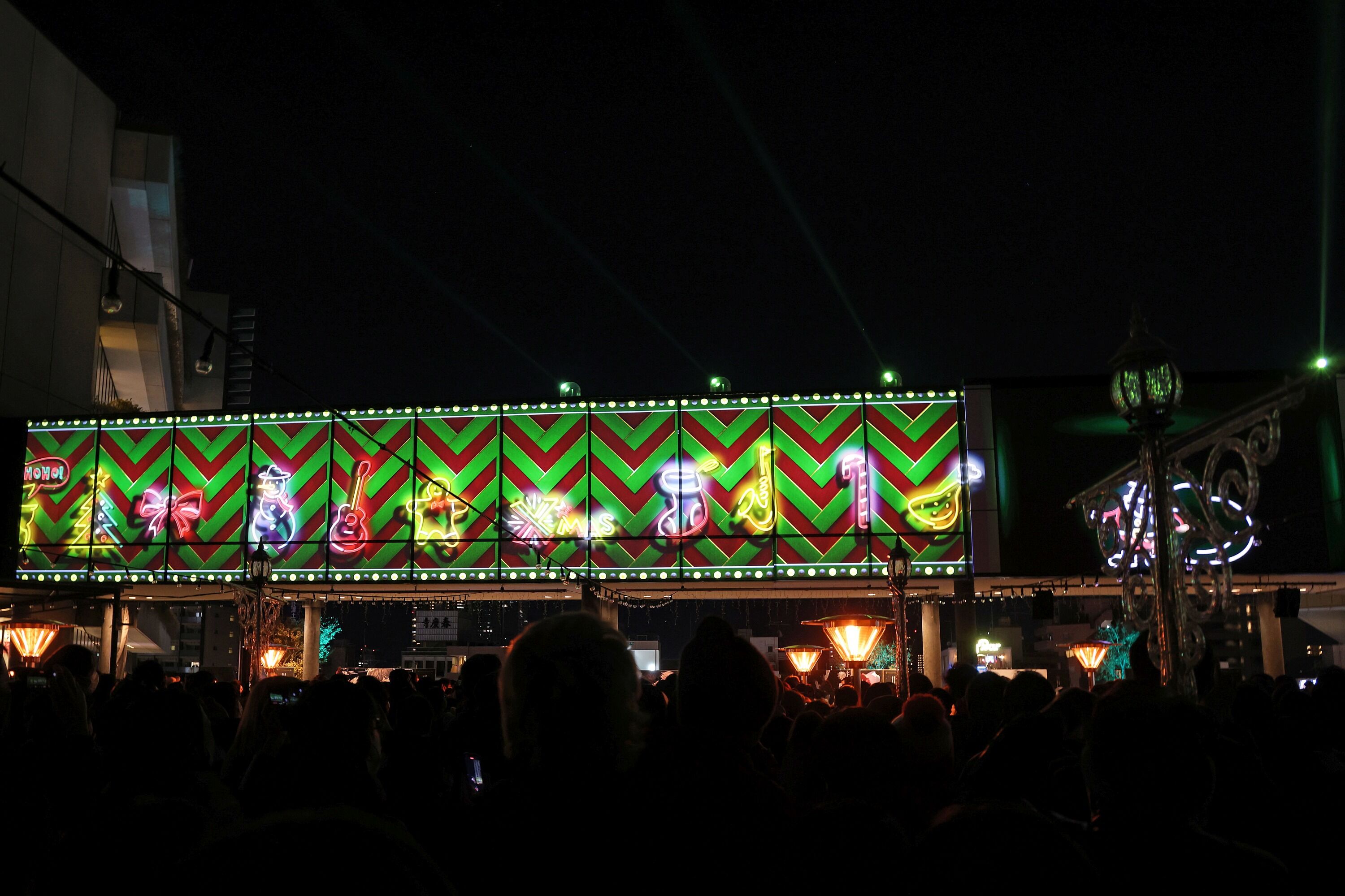 オープニングは塔体を上手に使って文字を投影していました。これはイベント名の「STAR LIGHT」です。