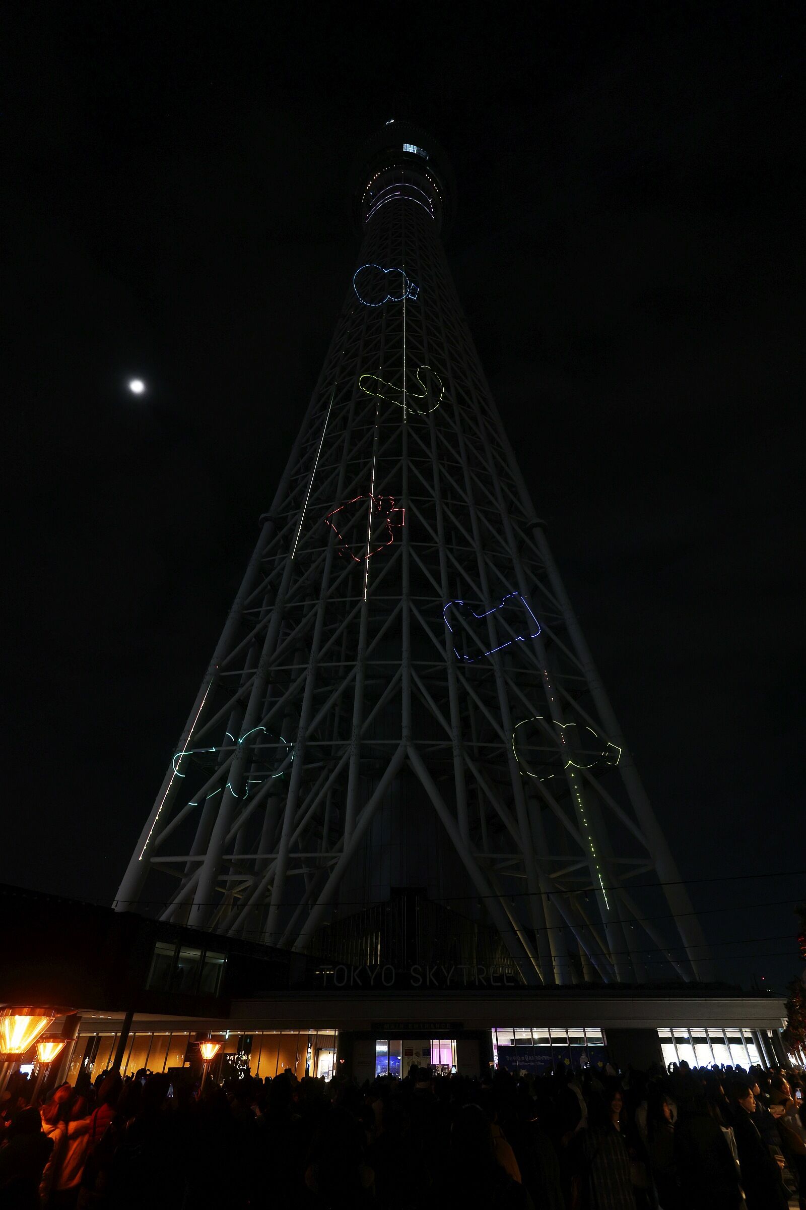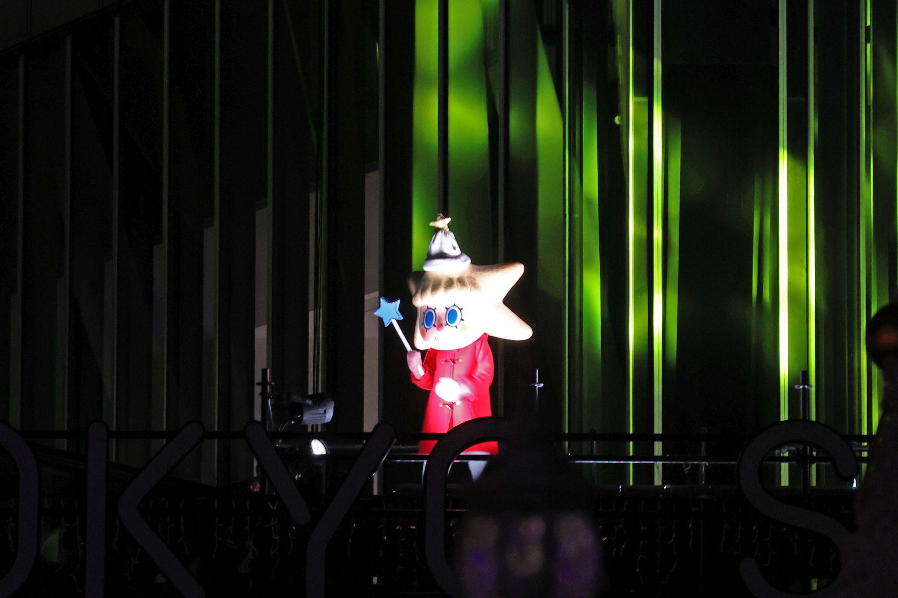 天望デッキあたりまで星がぴょんぴょんしながら移動し…ソラカラちゃんも同じように移動して…