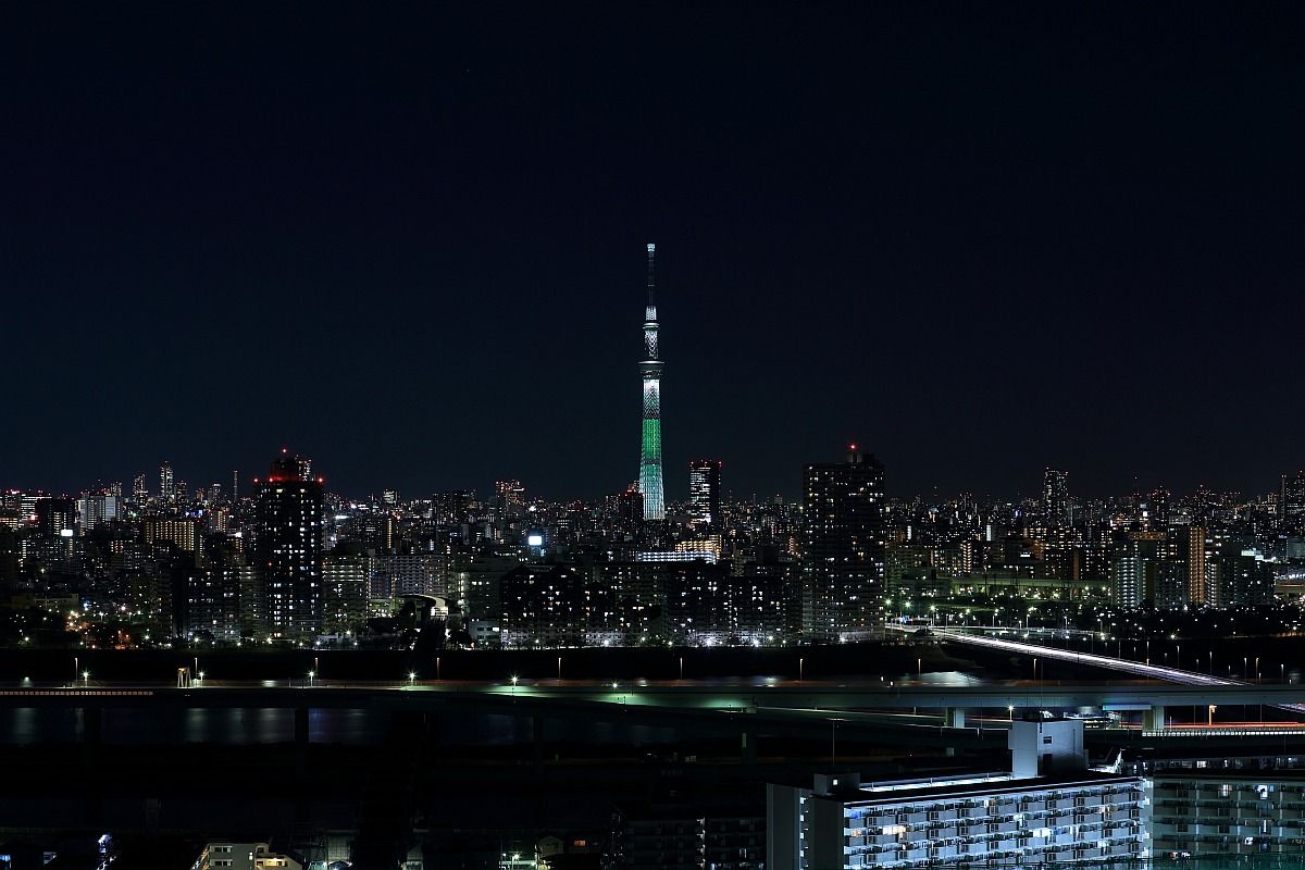 2015年11月13日、自宅マンションから撮影した「東京スカイツリー」夜景です。昨夜の東京スカイツリーはクリスマス特別ライティングで「ホワイトツリー」でした。