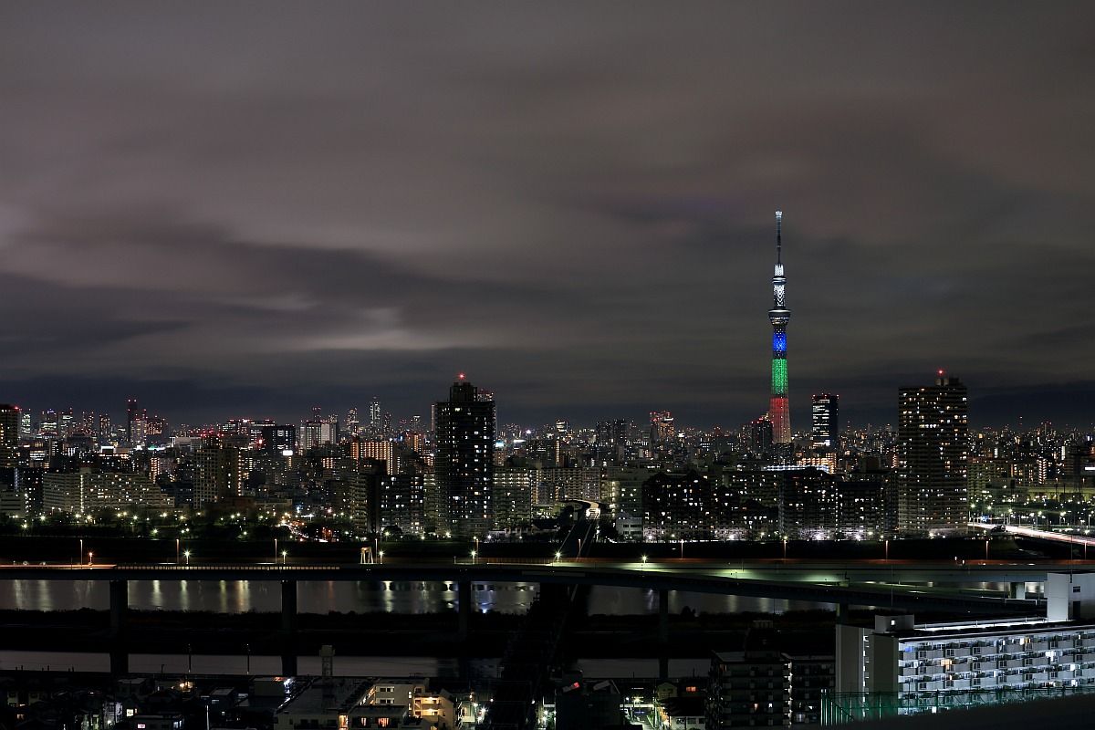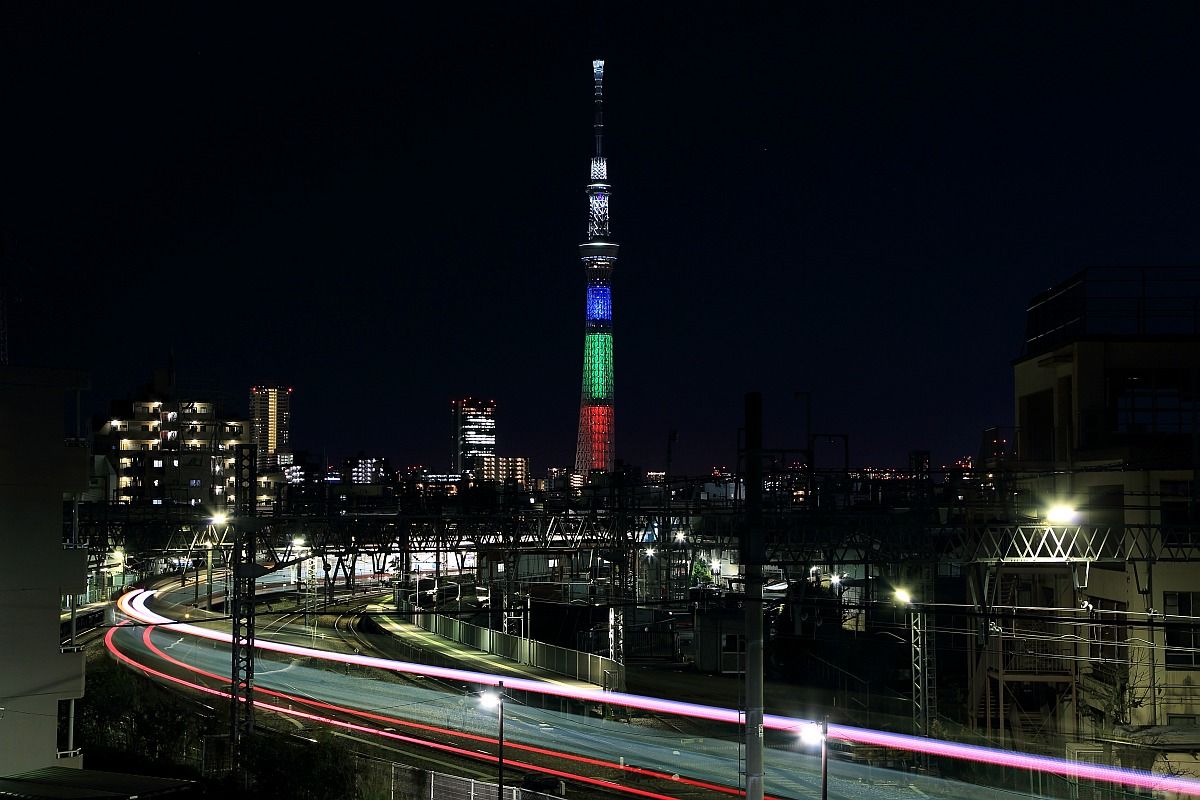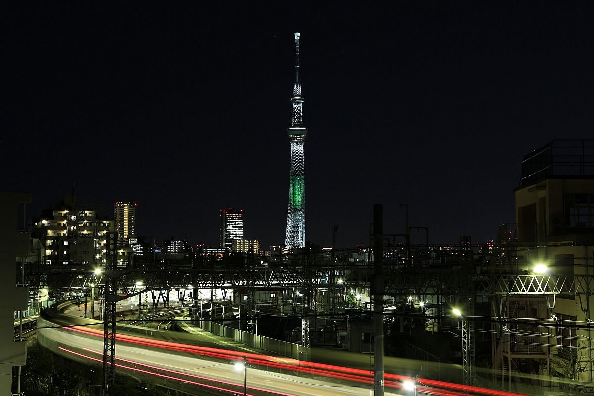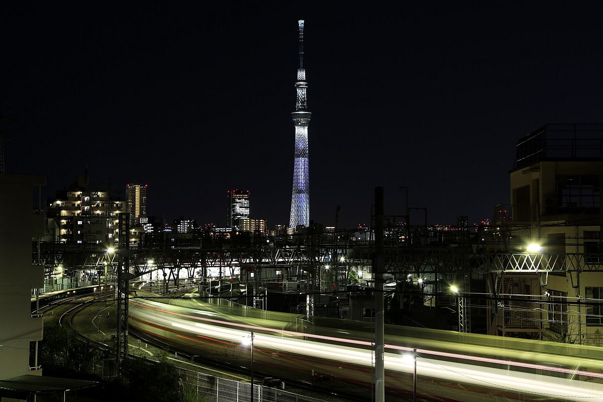 写真だとスカイツリーの上あたりの雲が、ブラシでこすったような模様で照らされて不思議な感じでした。この写真じゃ伝わらないですかね。