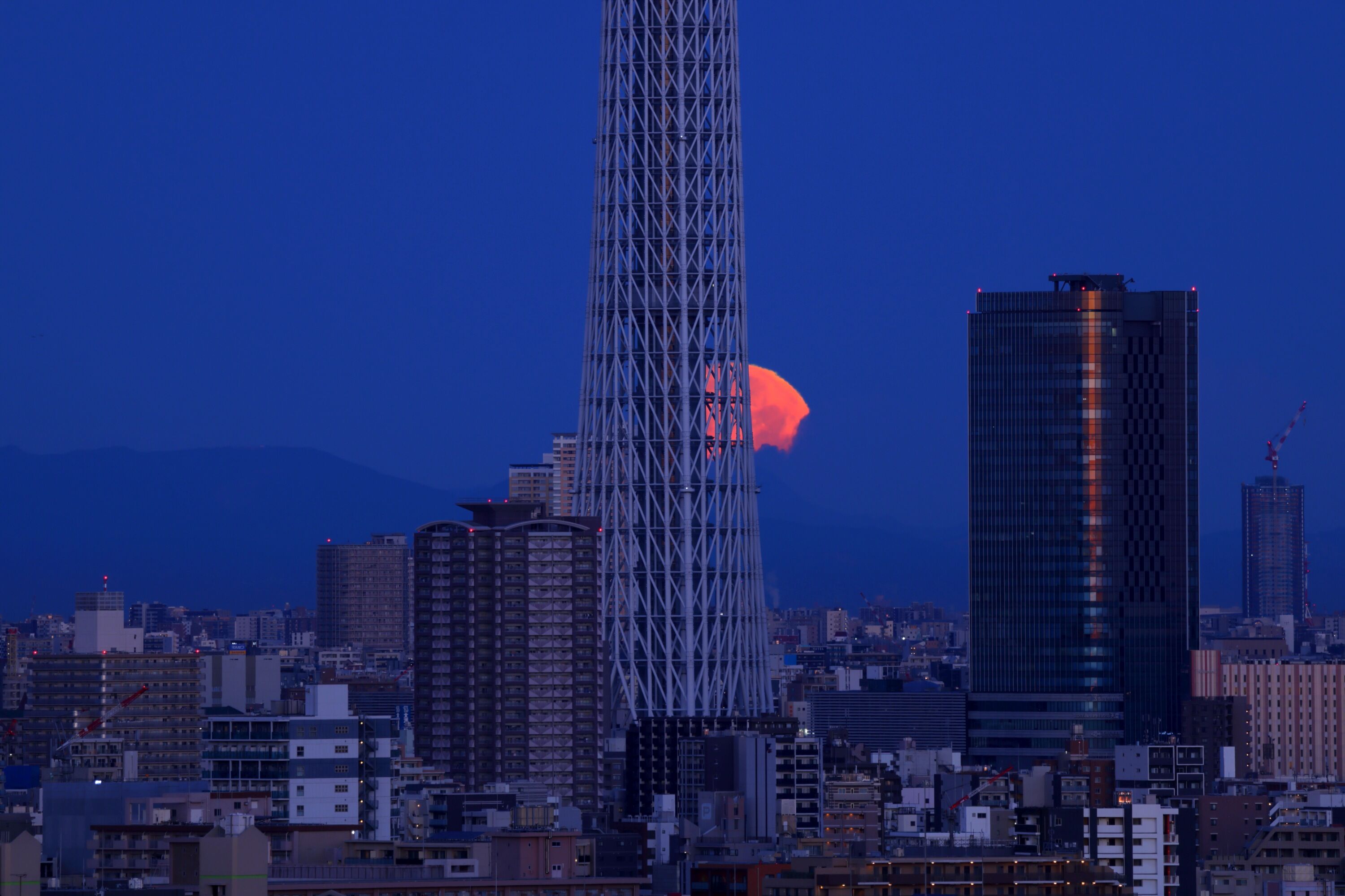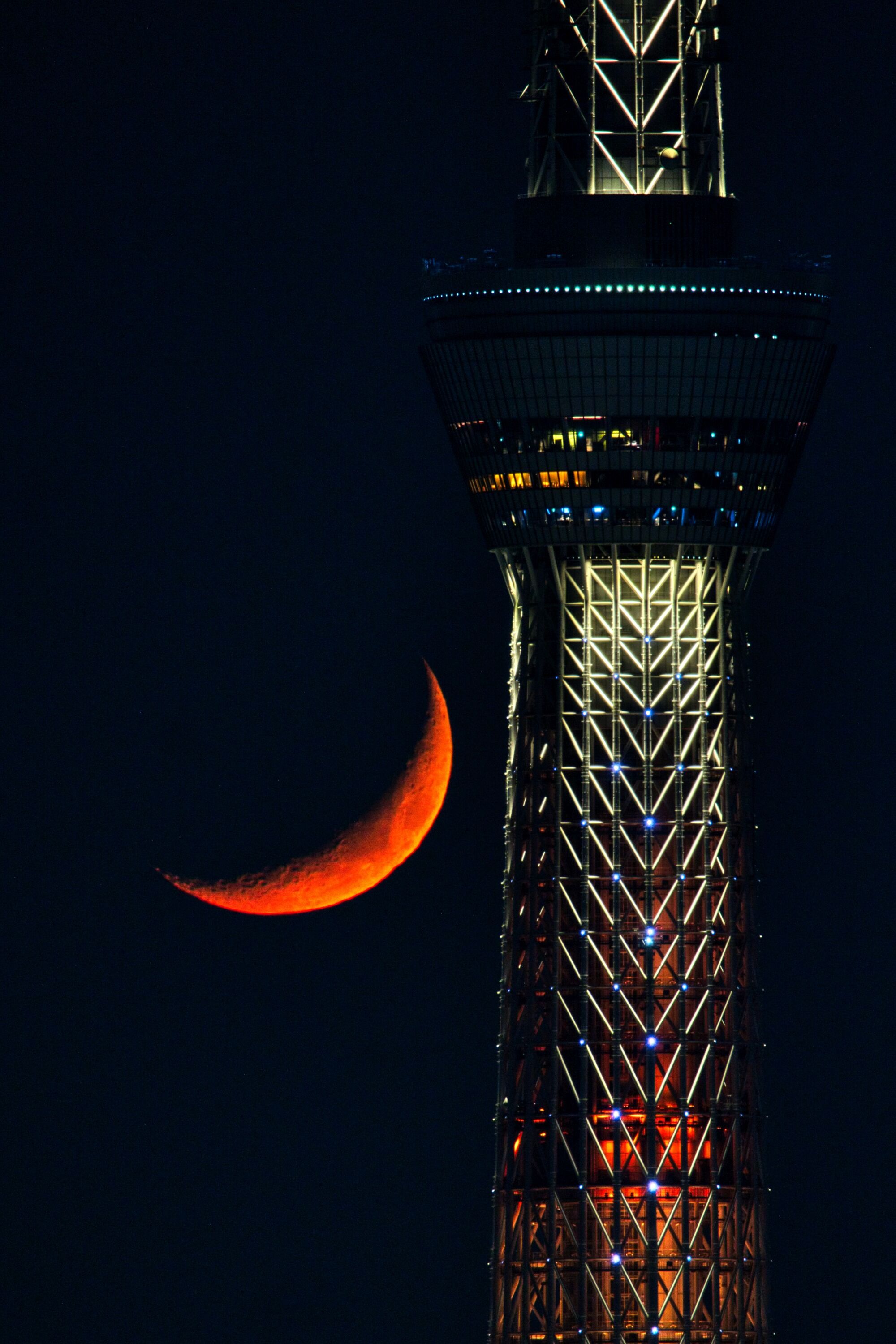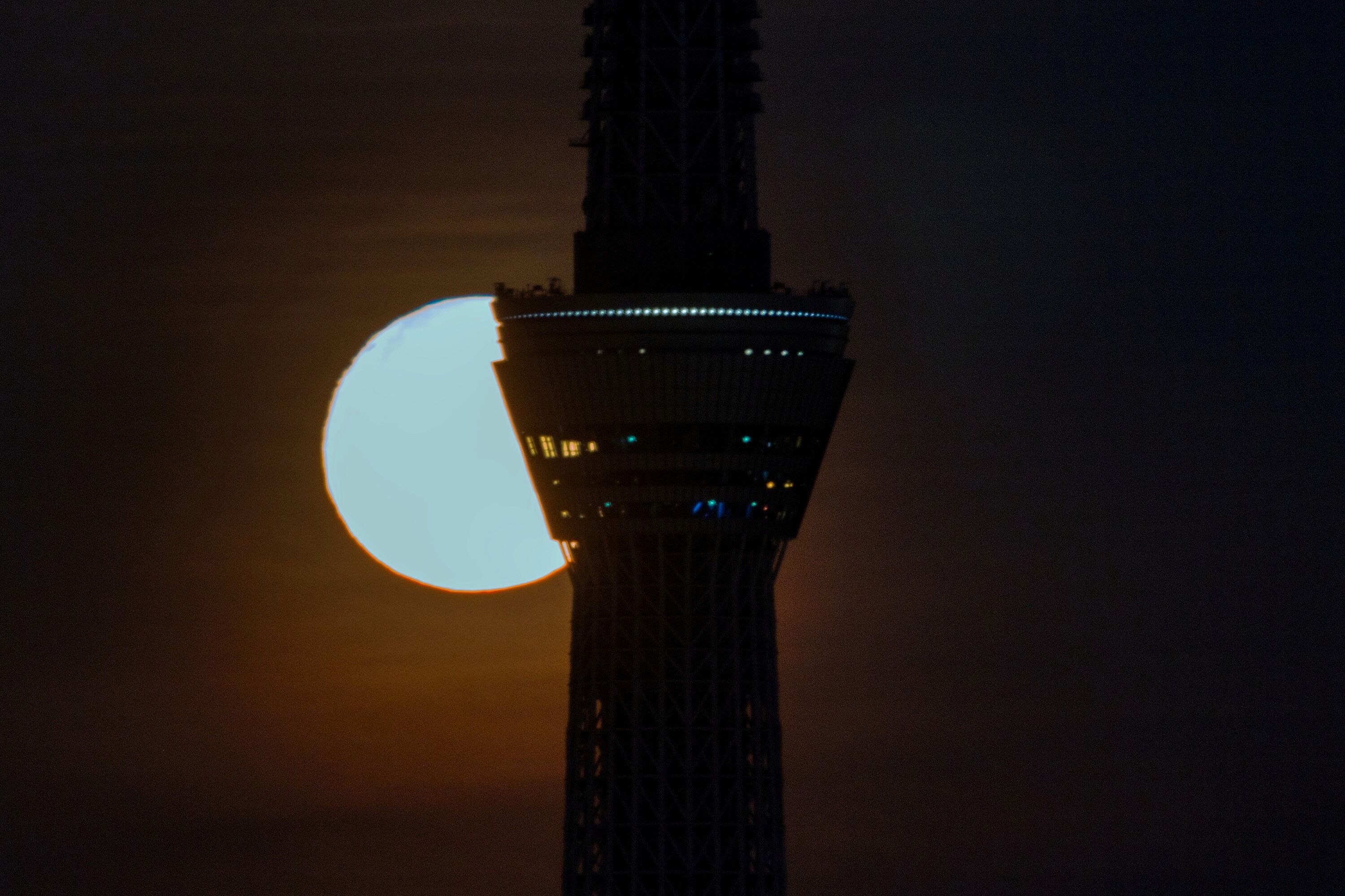 その後、月は東京スカイツリー イーストタワーの真上を通って…