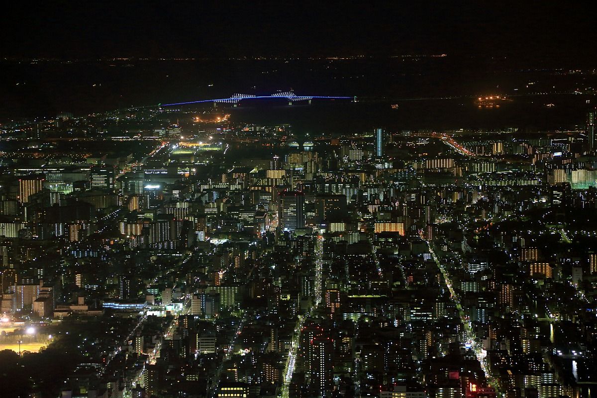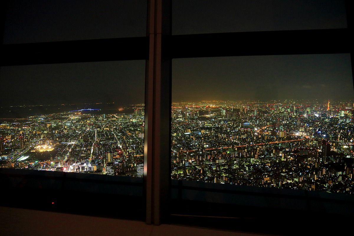 「東京ゲートブリッジ」から「東京タワー」までです。キレイです。ただ、展望台の窓までちょっと距離があるのでどうしても反射光が入ってしまいます。夜景を撮りたい人には残念な作りの展望台です。