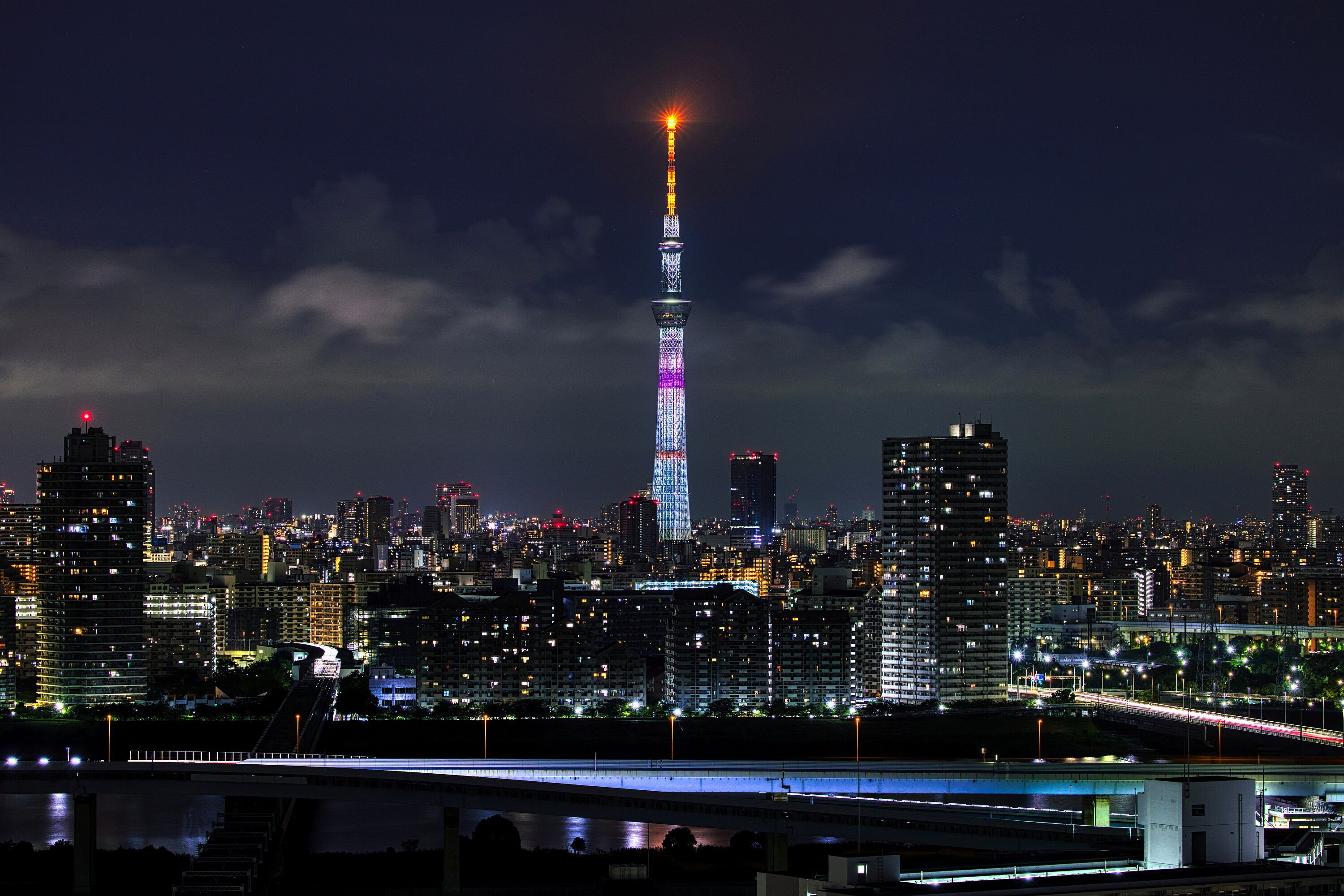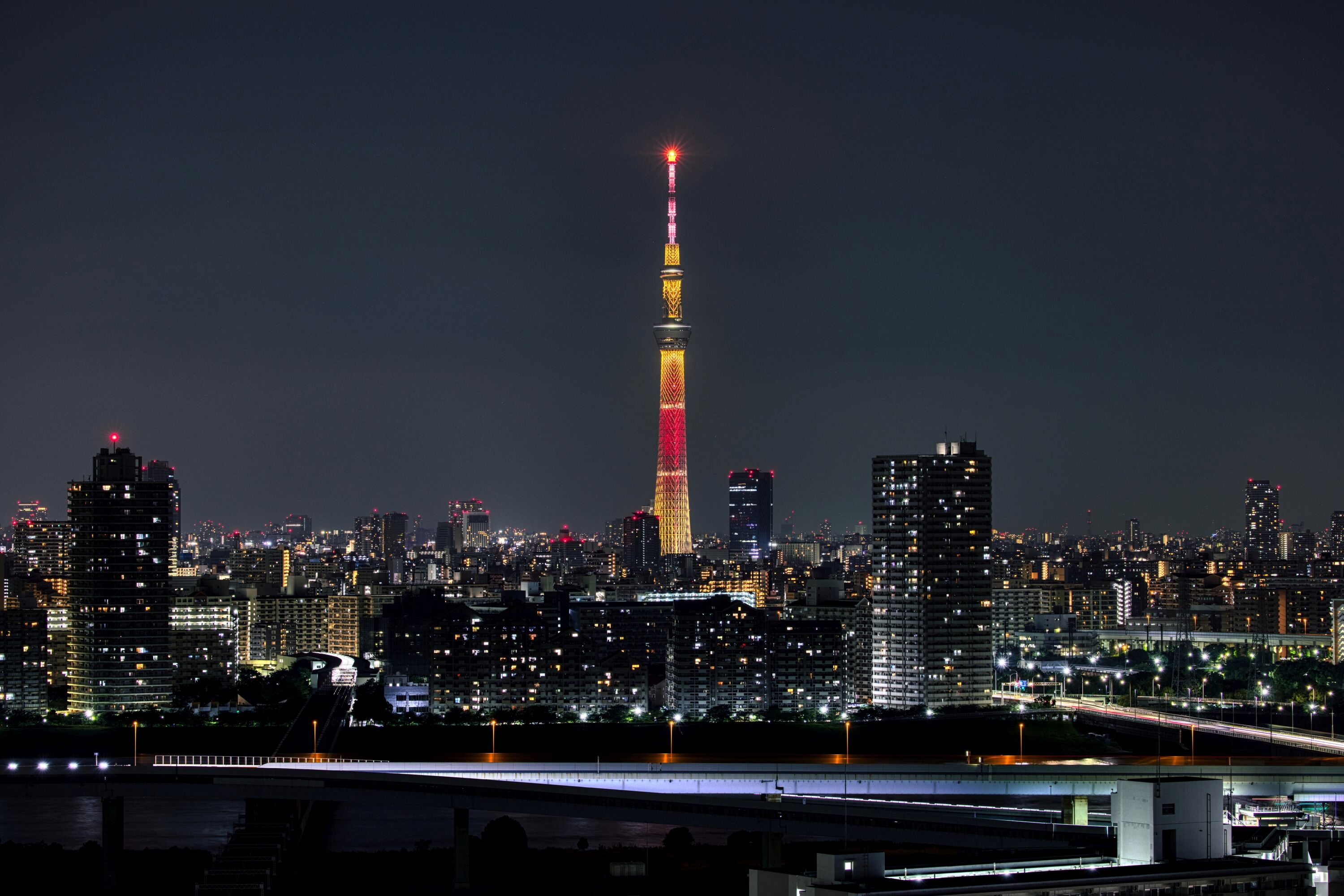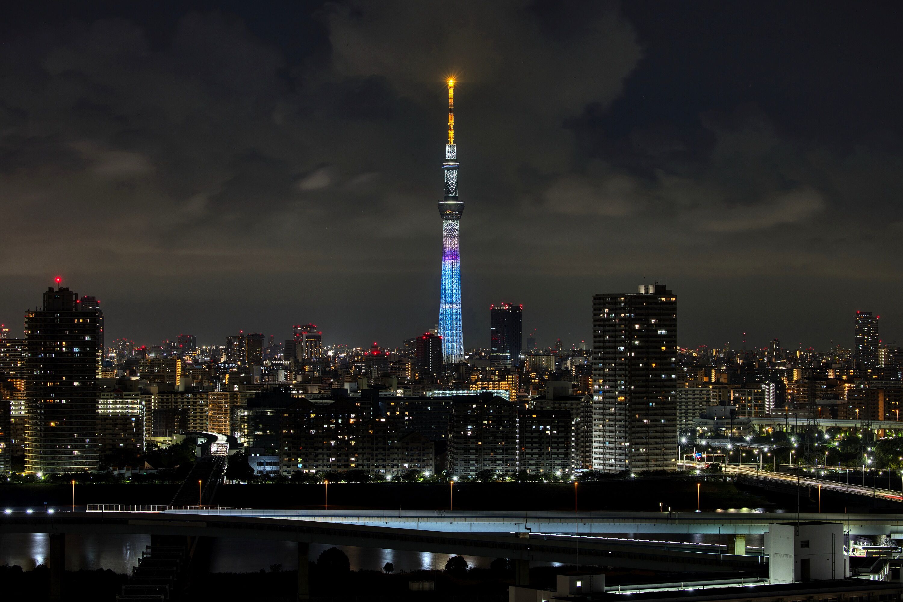2025年8月4日、自宅マンションから撮影した東京スカイツリー夜景です。昨夜は試験点灯が行われました。ただ、昨日は視界が悪くてキレイに撮れない状態だったので、違うパターンがあるかもと思いながら2枚だけ撮って退散。試験点灯を撮った枚数、時間は過去最低です(^^;)