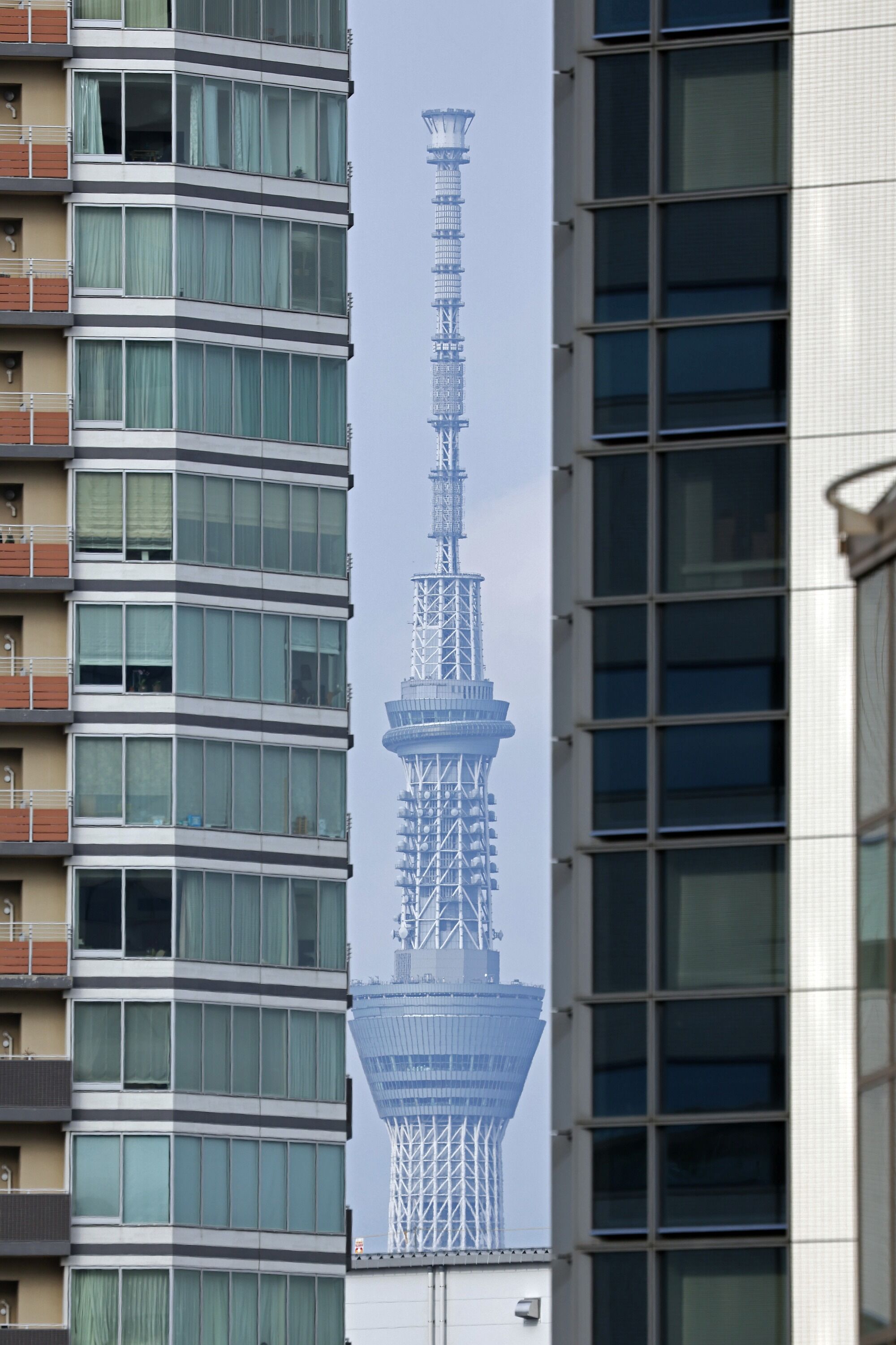 東京スカイツリーの着雪防止ネット設置状況(2025年11月17日)